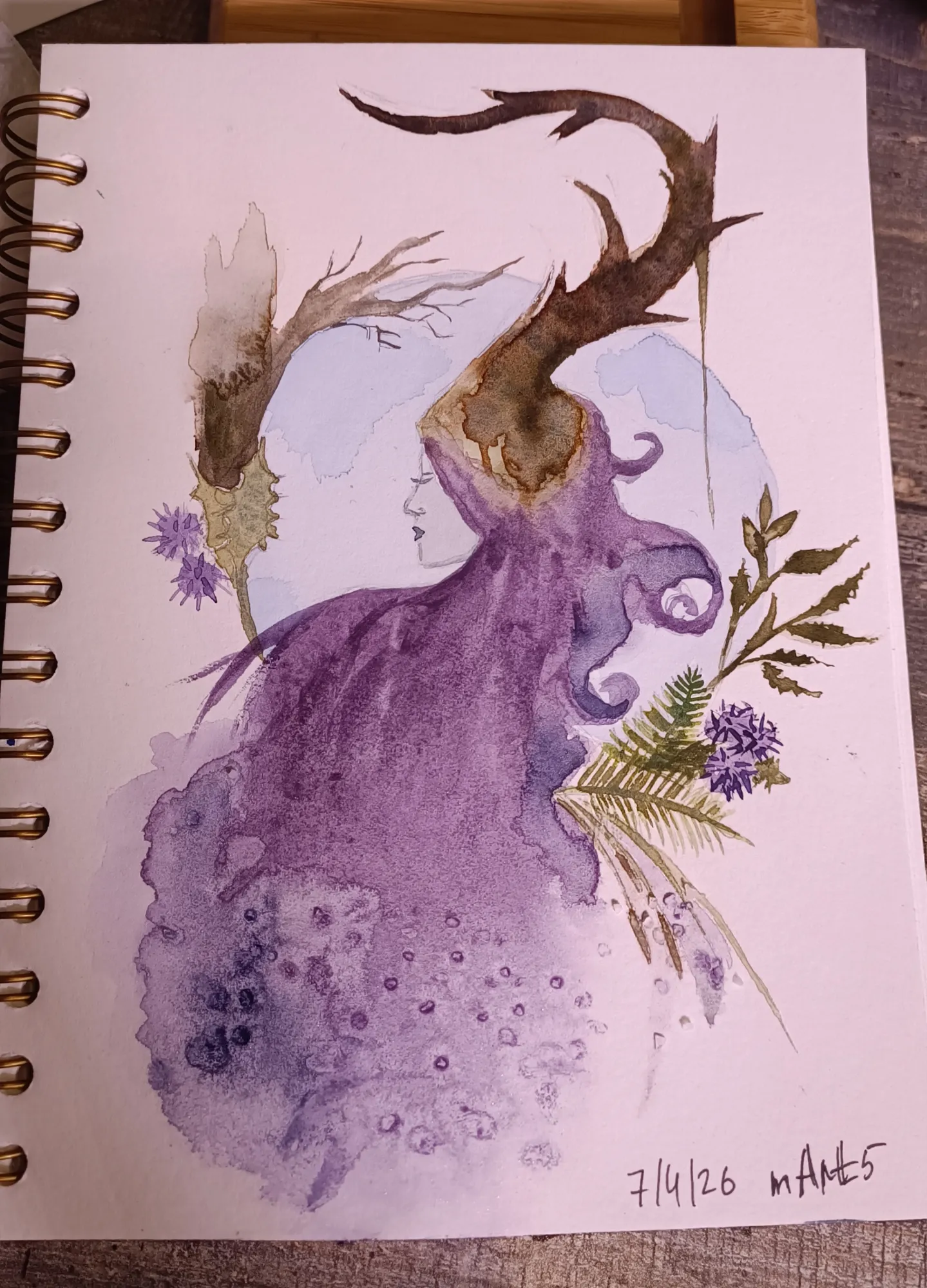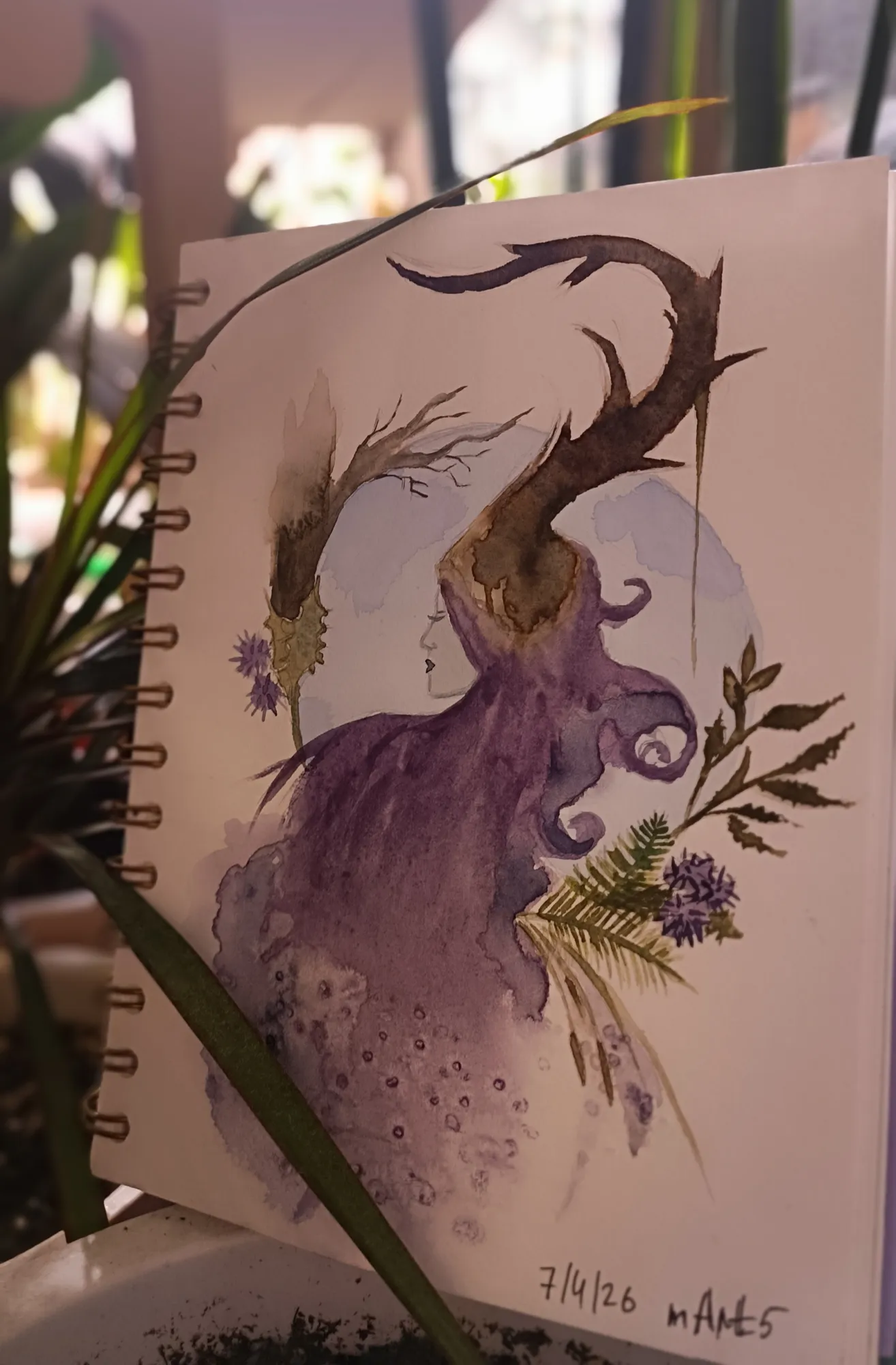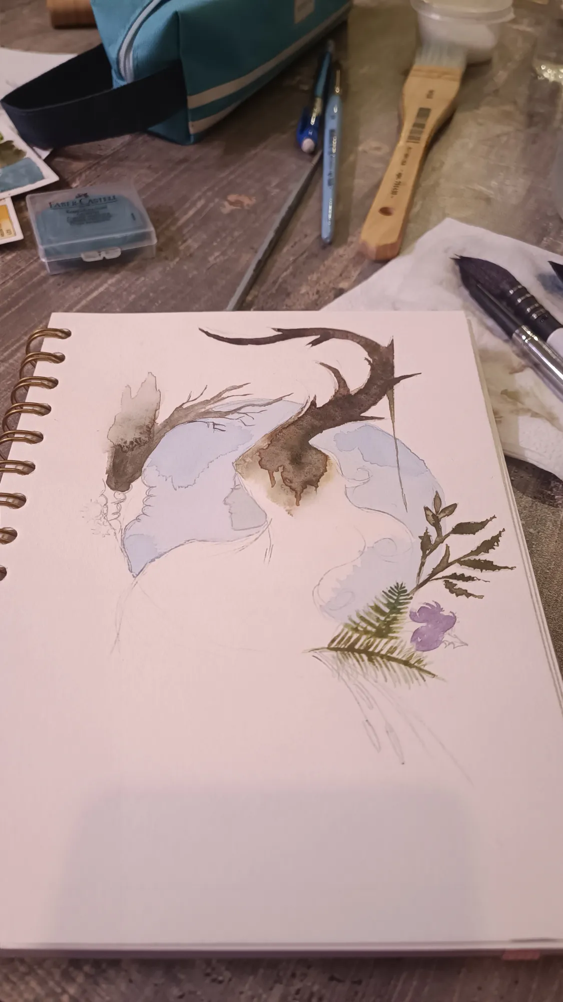 Вторая рука женщины. Я водил хвостом по крышке-мольберту, и линия появлялась — плавная, живая, тёплая. Локоть. Предплечье. Запястье. Пальцы.