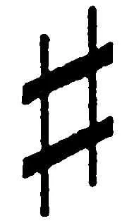У хэша по диагонали располагаются вертикальные палочки, а у диеза — горизонтальные.