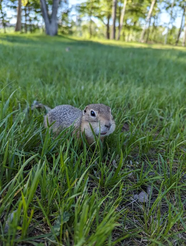Так о чём это я? Ах, да, суслики. По данным сотрудников кафедры охотничьего ресурсоведения и заповедного дела СФУ, на острове Татышев живут 4,5 тысячи особей, то есть остров является буквально их царством, он весь изрыт норками. Для сусликов даже обустроили самый настоящий пешеходный переход.