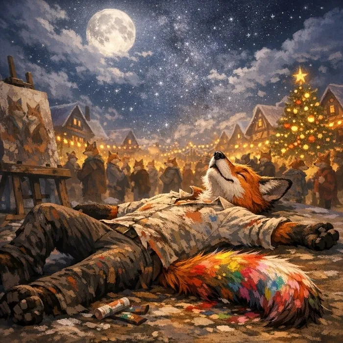 Я отступил на шаг, тяжело дыша, хвост всё ещё в лапе, разноцветный от красок.