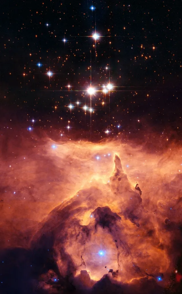 Это заполоненный плотными газопылевыми облаками участок, в недрах которого активно рождаются новые звезды. Многие из них имеют такую большую массу, что они очень быстро сожгут все запасы водорода и завершат свою жизнь взрывами сверхновых.