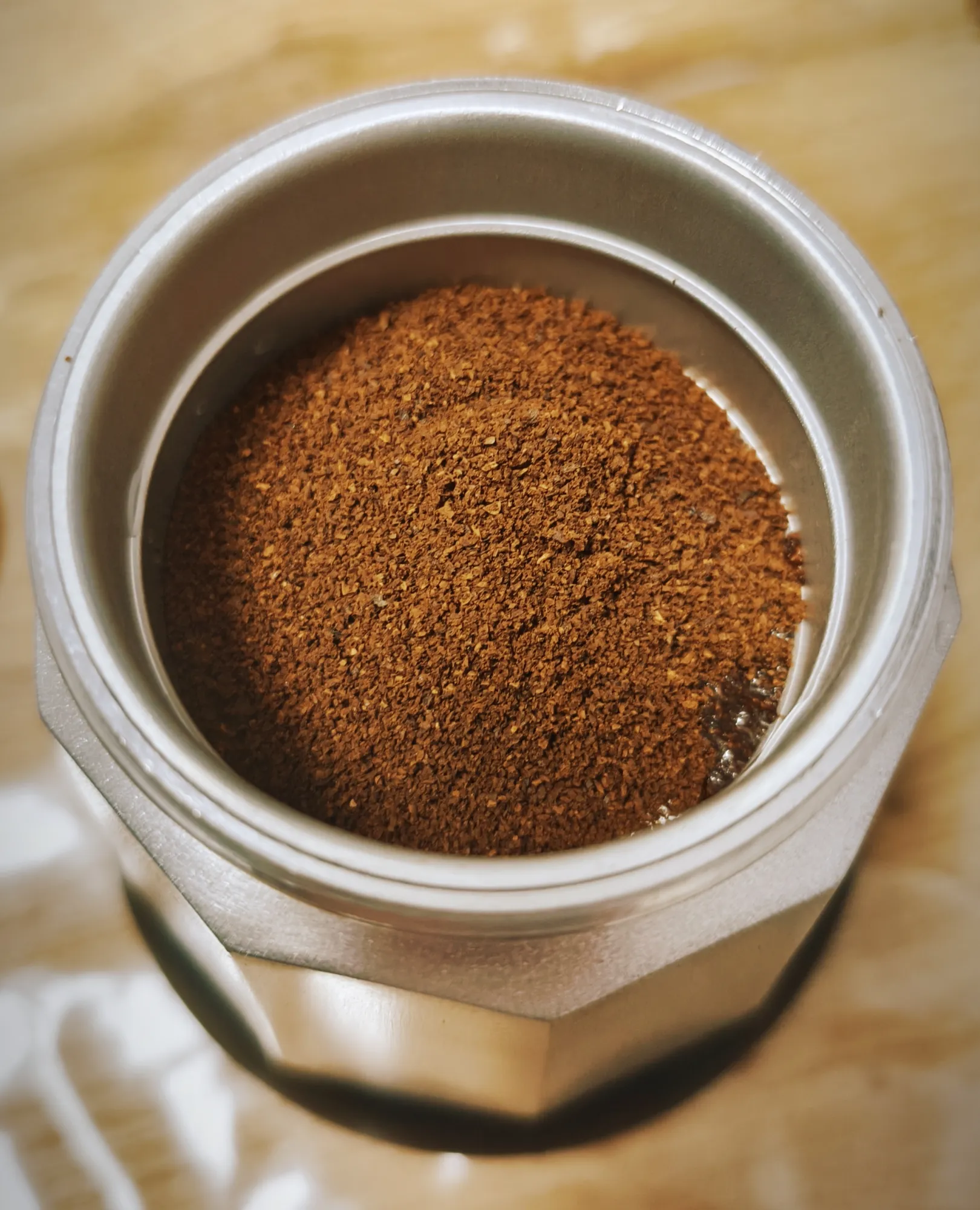 Закрываем промежуточным ситечком. Это очень важный этап. Если насыпать мало кофе, то горячая вода будет проходить мимо кофе и он практически не заварится. Тут как в анекдоте: не жалейте заварки.