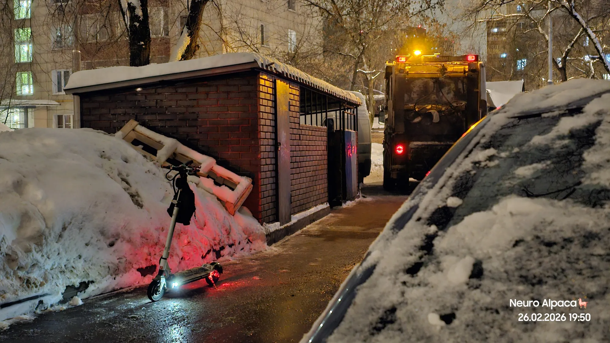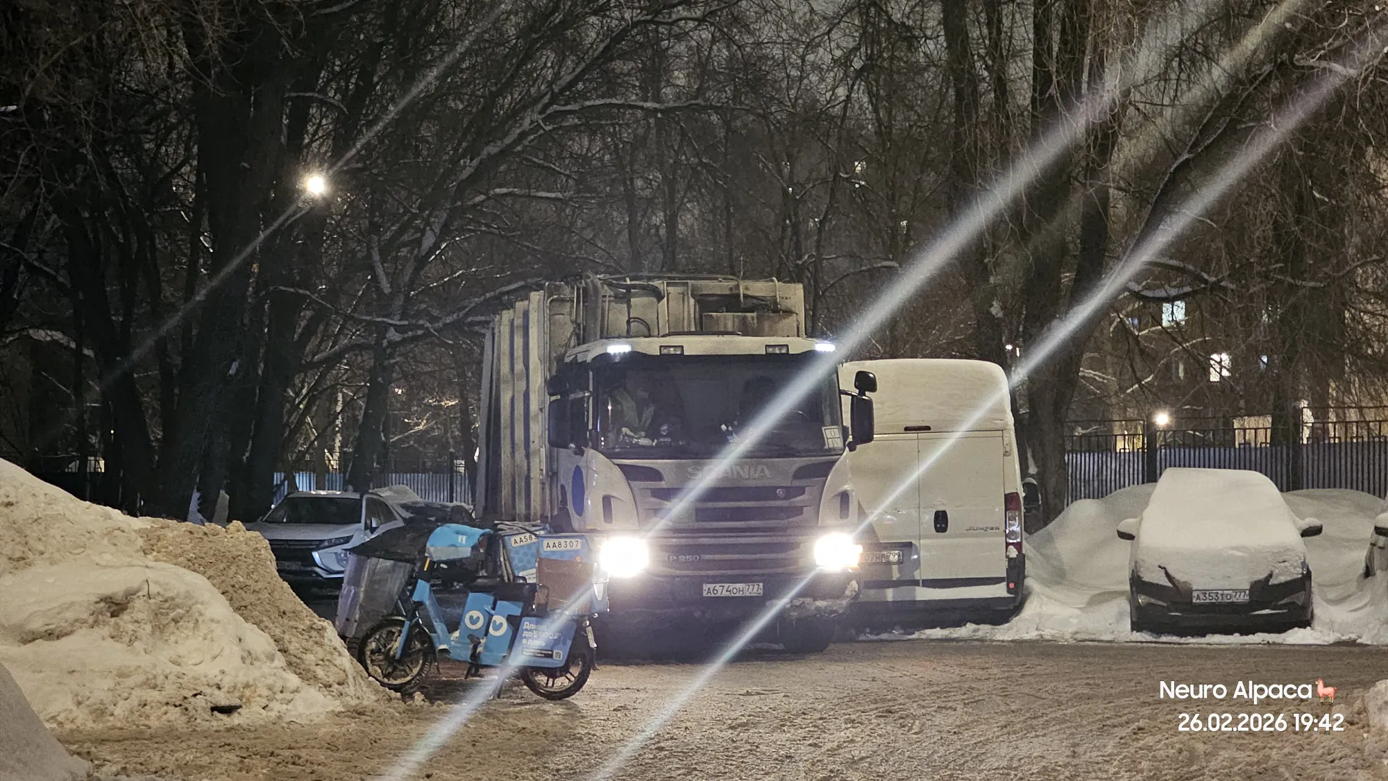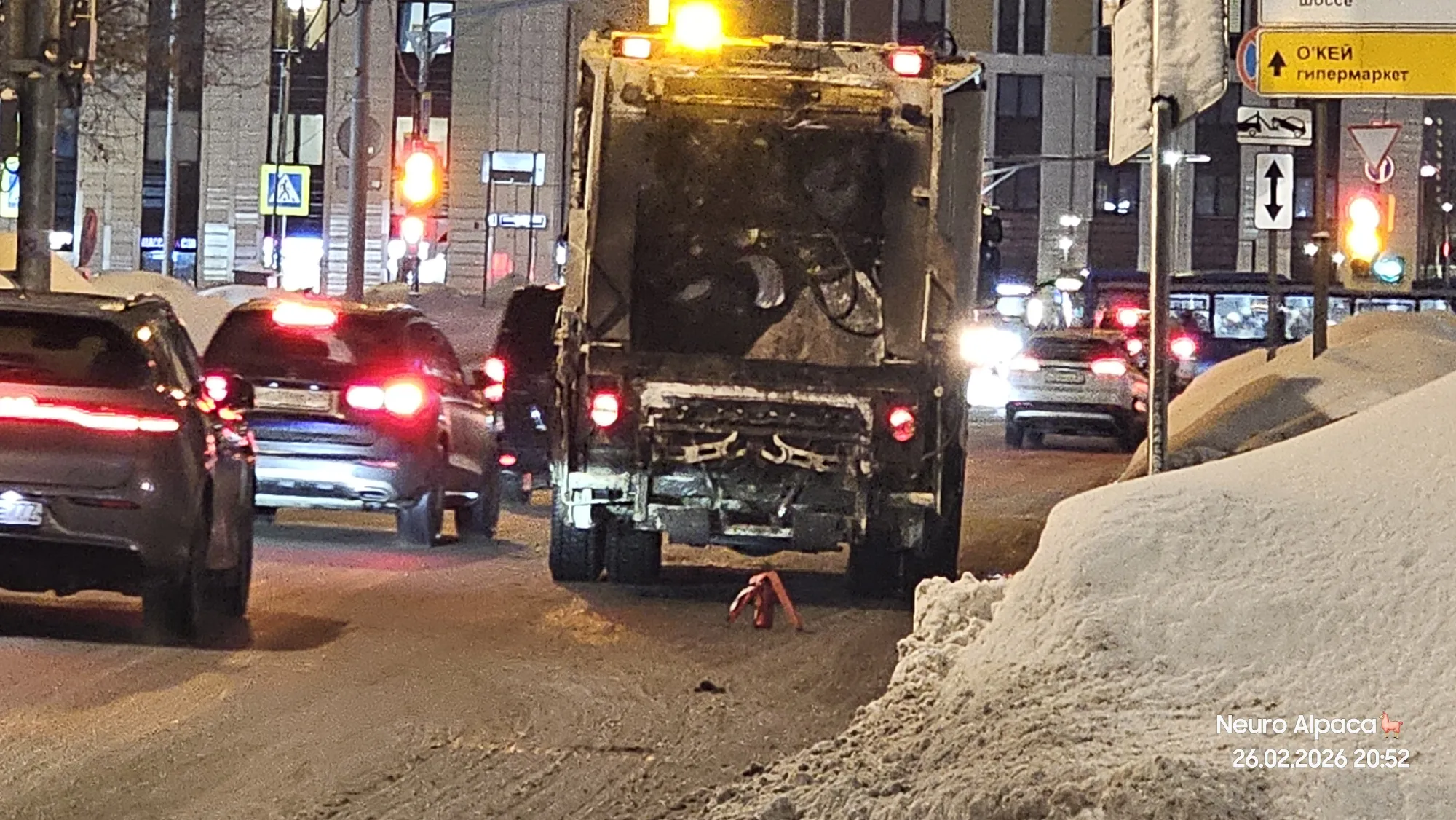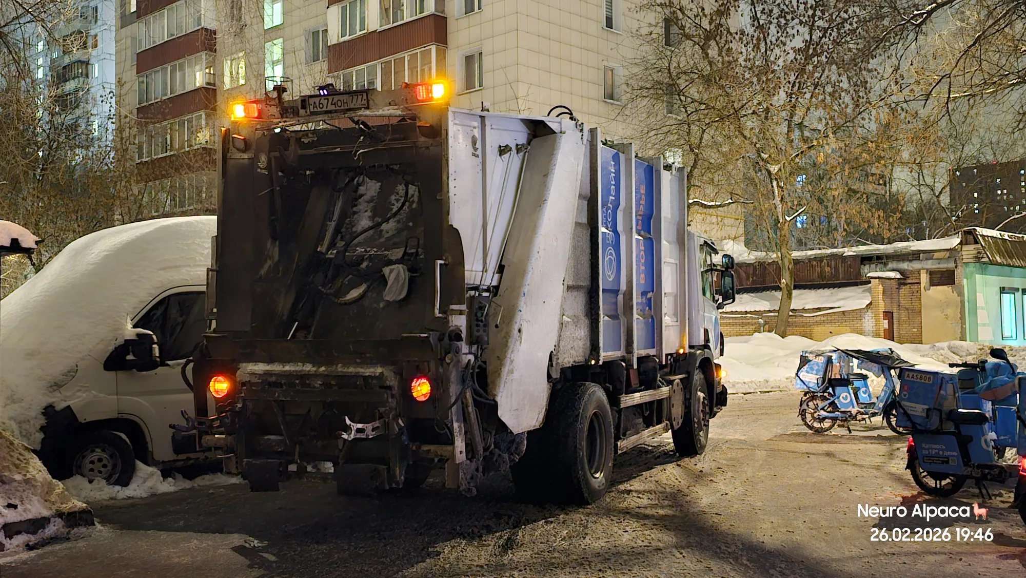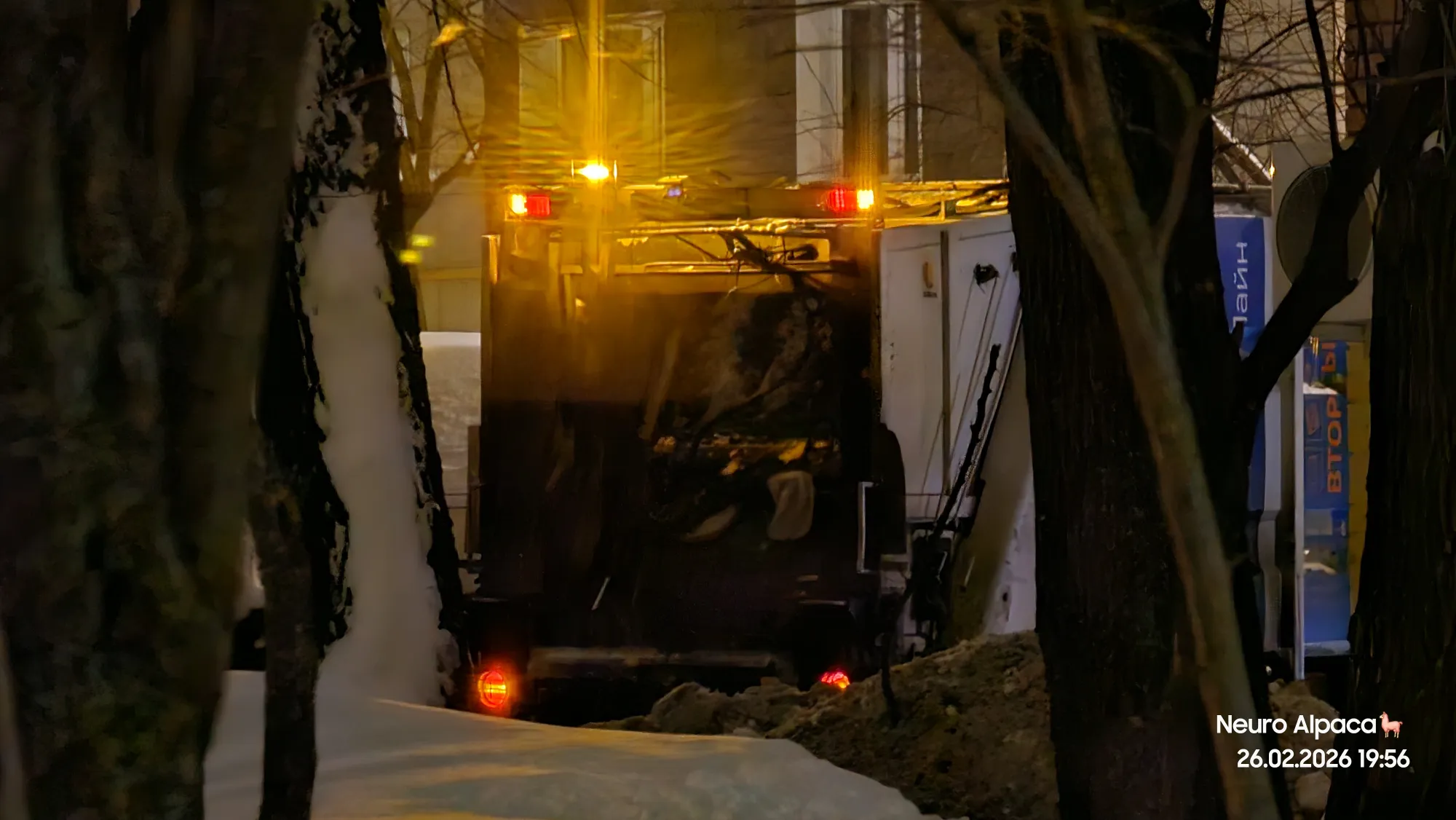 Мусоровоз подозрительно долго стоит на месте... в моей голове включается гиперфикс на него, ибо я достаточно давно знаю эти машины в моих краях, обычно они хоп-хоп, и уезжают, а тут он встал, и всё...