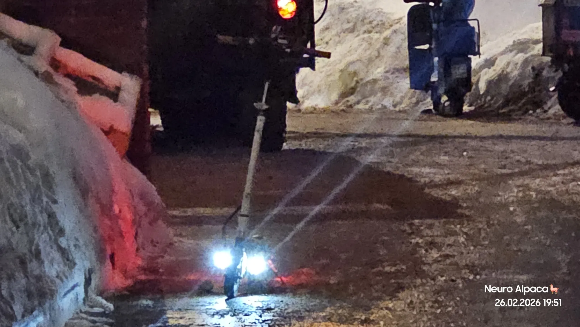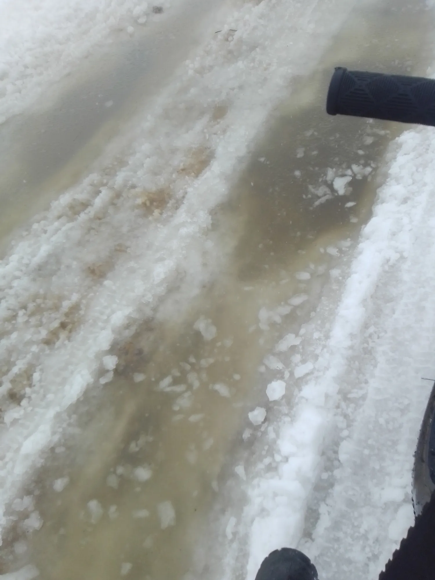 Самое интересное, это когда заднее колесо стягивает в колею с водой. Переднее колесо направляю в колею , и шипы вгрызаются в лёд на 150% . Рано пока шипы подрезать 😀🤗. Безопасность костей дороже! Потом еду в коллее с водой. Интересно так 🙄.