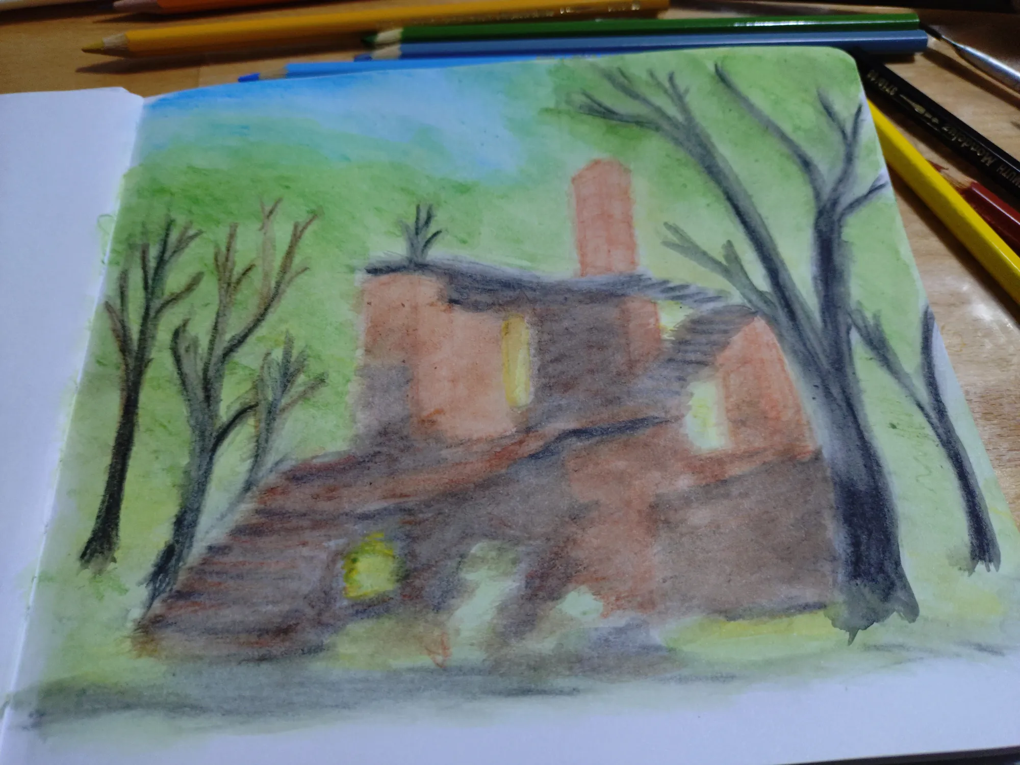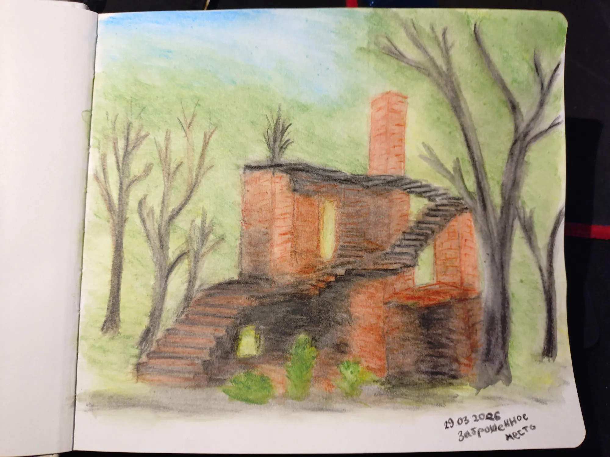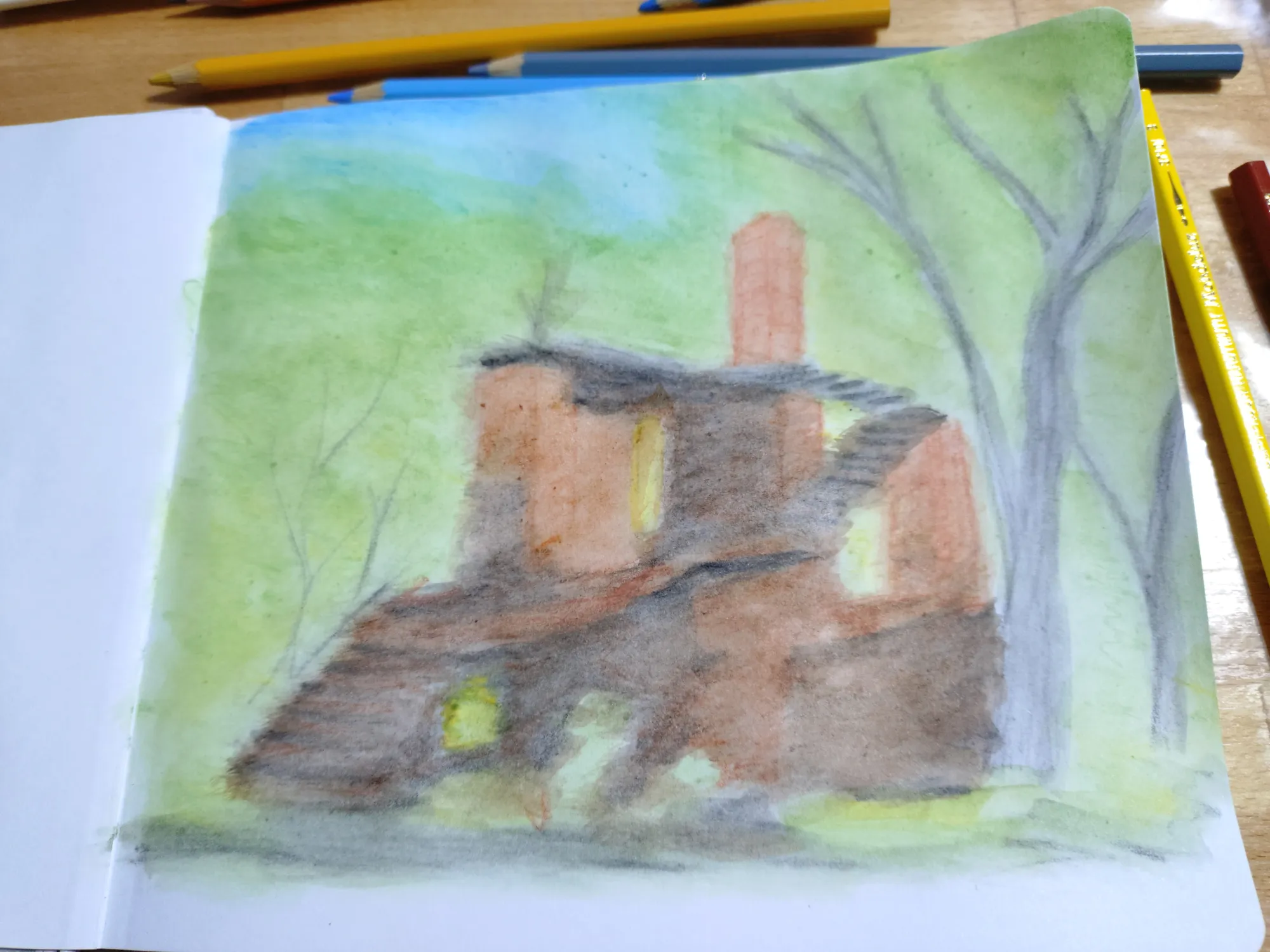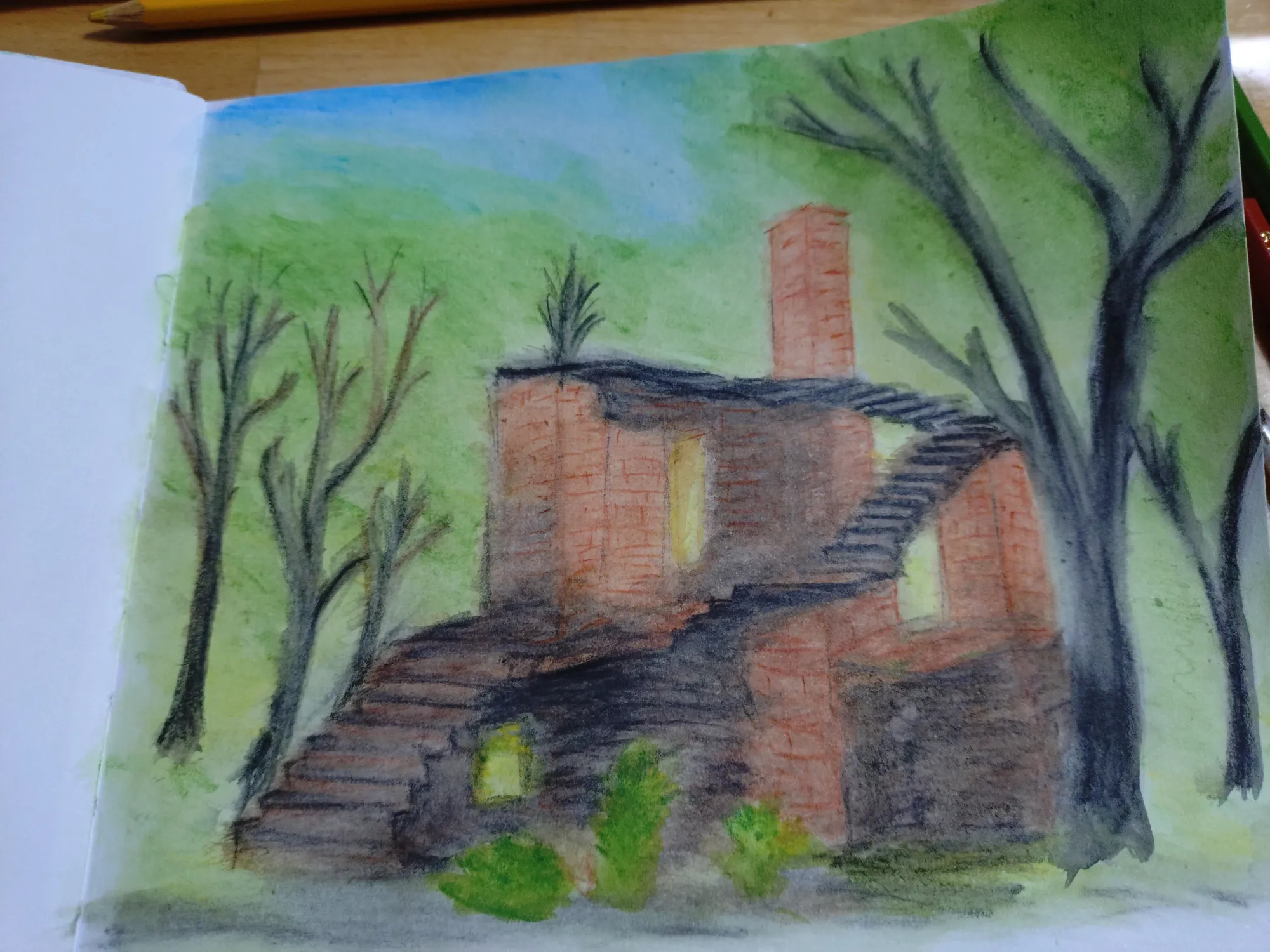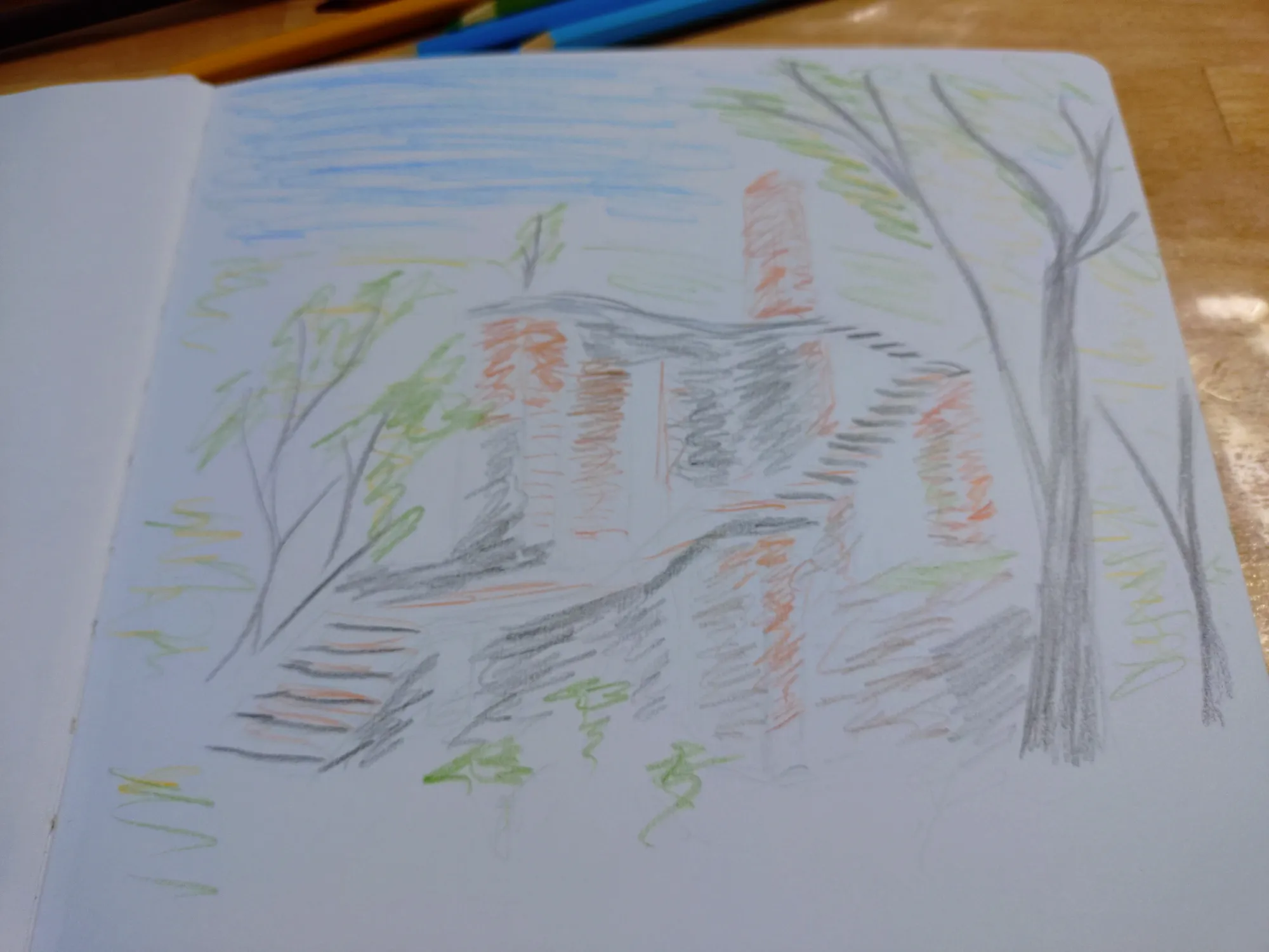 Пленэр получился совершенно бессистемным: пока остальные участницы группы рисовали один сюжет, я начала тоже с одного, правда не такого как у них, но потом вышло солнце, и я поняла, что надо рисовать то, на чём появились прикольные тени, а тот сюжет подождёт, там теней особо нет. Правда же тени прикольные?