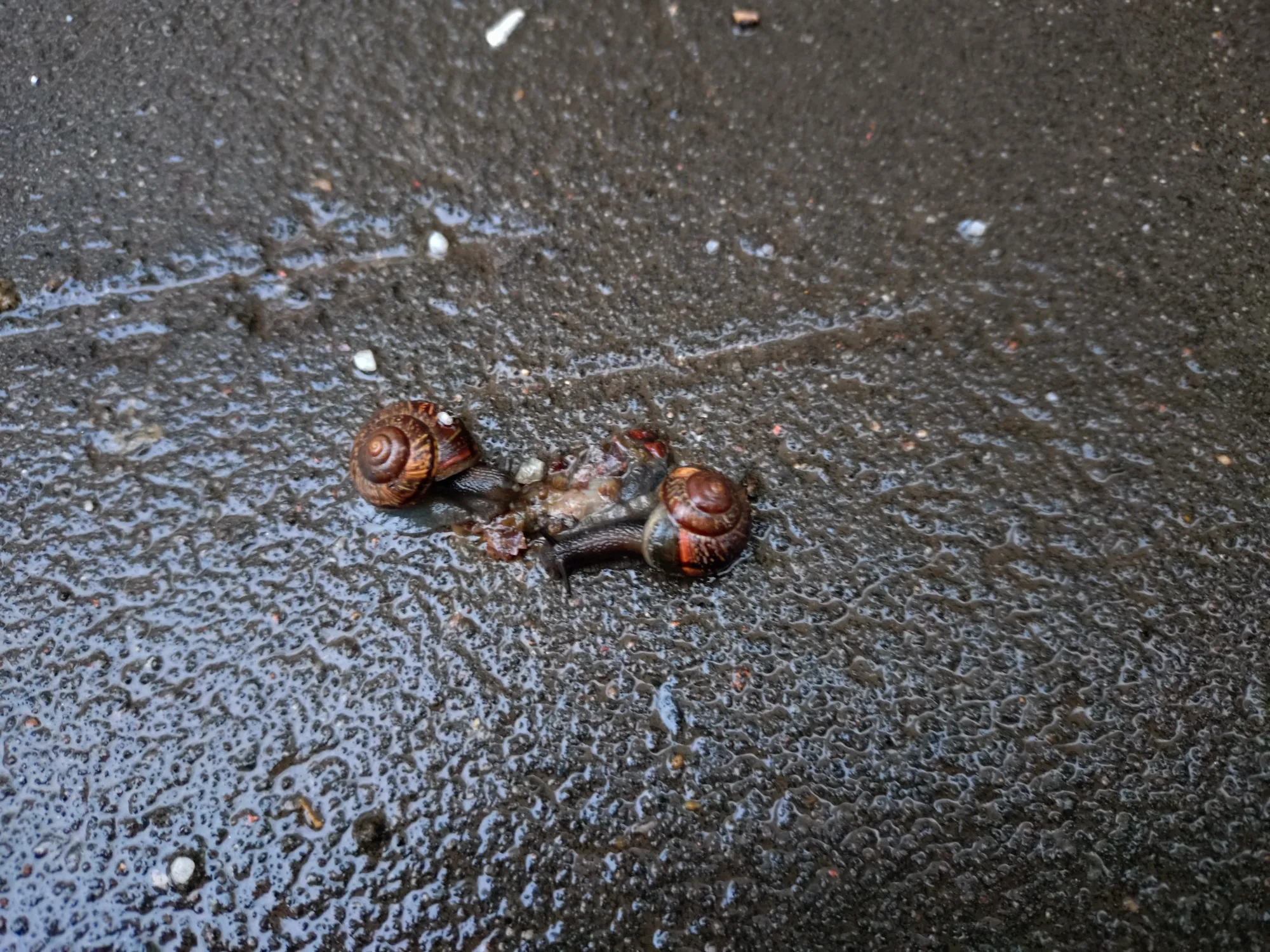 На трупы собратьев сползаются еще улиточки и устраивают пир.