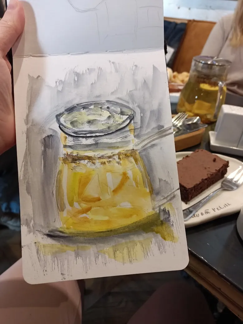 Думаете, на этом всё? Нетушки, мы пошли в кофейню, и там тоже не выдержали, достали краски и начали рисовать чайник )