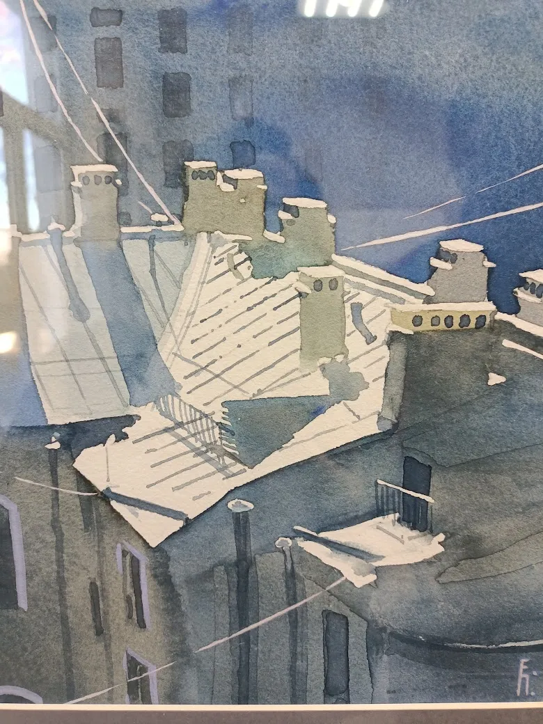 Есть целый зал с акварелями, среди которых есть как чисто коммерческие пейзажи,