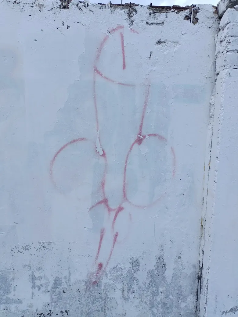 На этом культуролог во мне пошёл спать, а я уже возвращаясь домой на свежезакрашенном заборе нашла недозакрашенное вот чего: