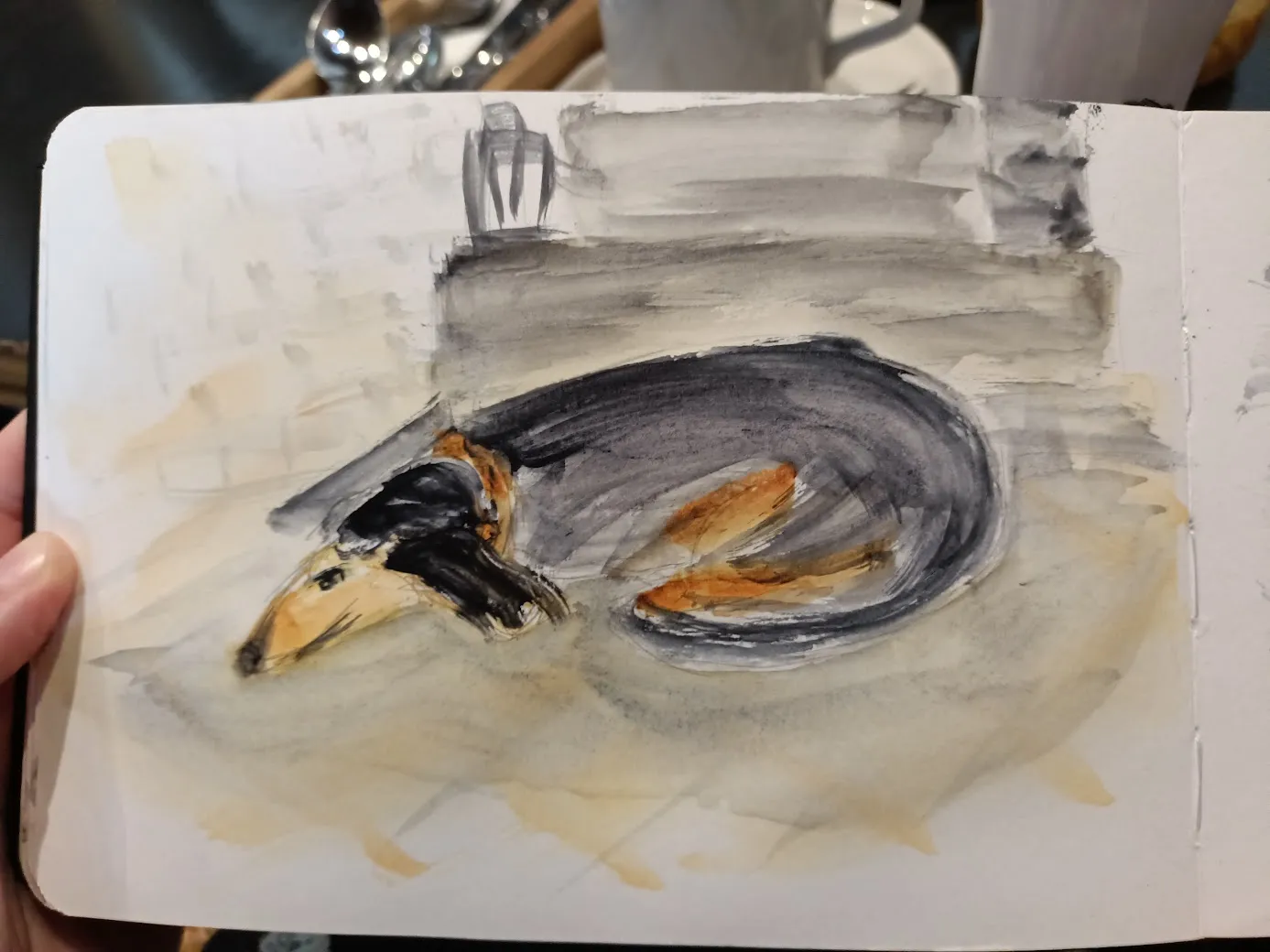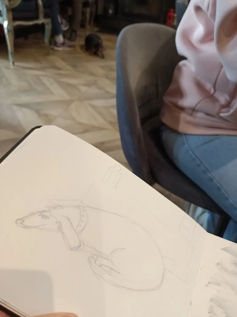 Но зато нарисовала таксу, с которой пришли в кафе две бабушки (такса тоже пожилая, но очень милая)