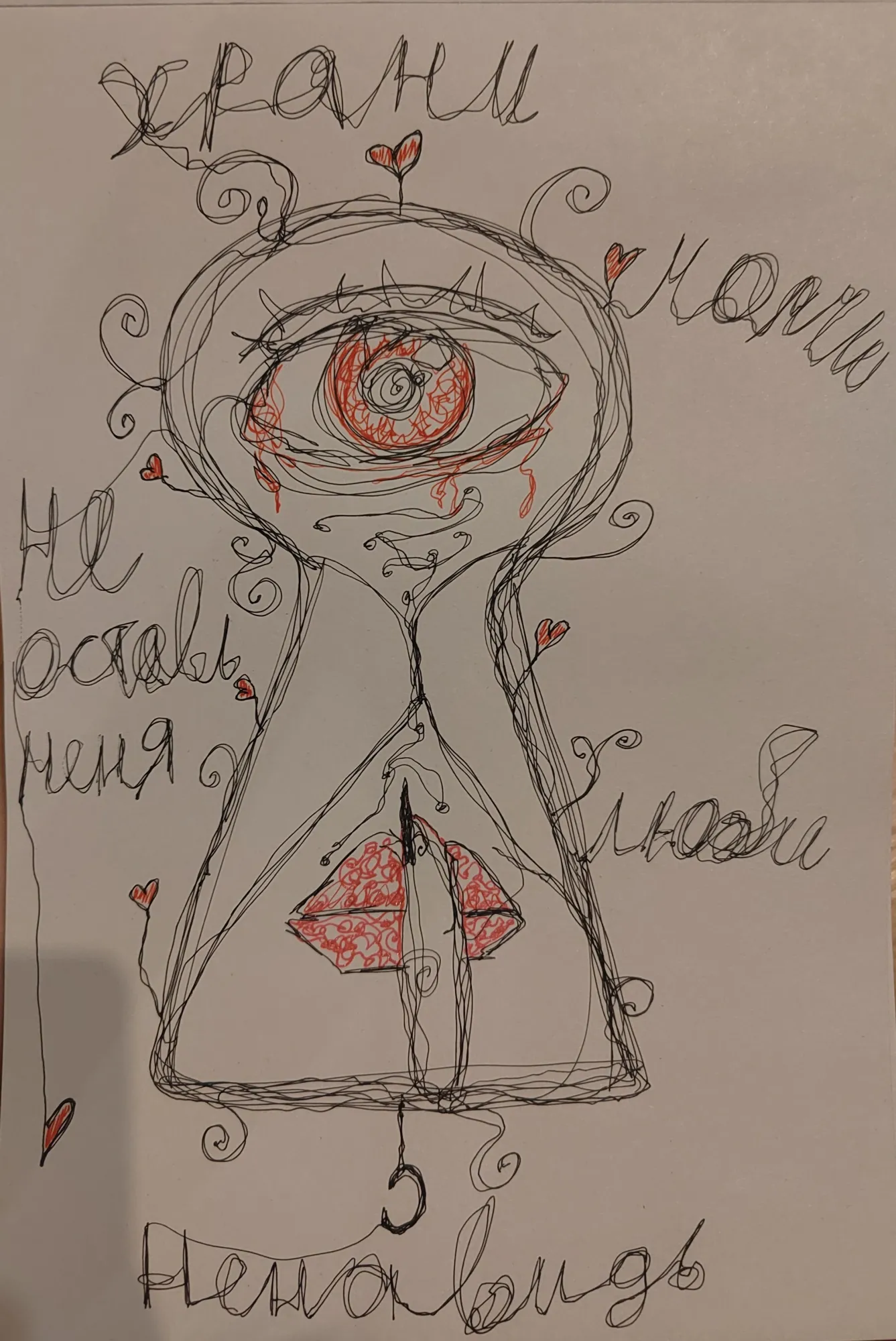 Тайна — это что-то про чувства, наверное. В данном рисунке я попыталась изобразить взаимоотношения после того, как один из двух партнёров увидел измену второго. Что происходит в голове, если человек решил хранить эту тайну, как будто ничего не знает, чтобы сохранить семью.