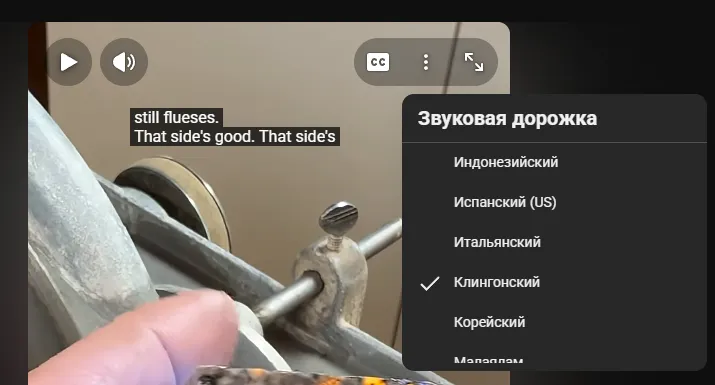В конце шортса креатор говорит, что, чтобы узнать больше о минерале, можно нажать 3 точки и в настройках аудио выбрать звуковая дорожка - клингонский.