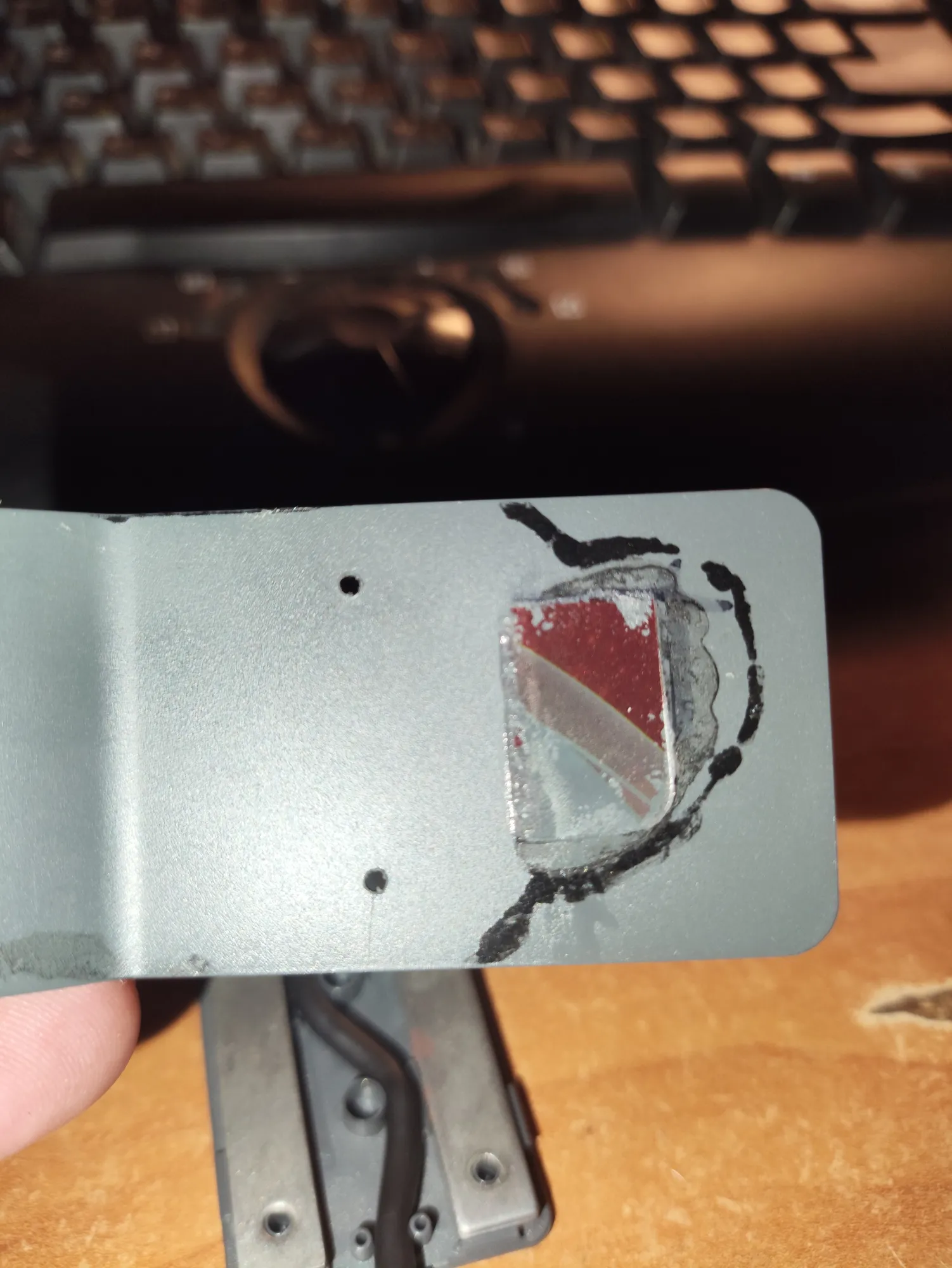 В крышке ковыряю два отверстия под контакты. Вернее под провода контактов: