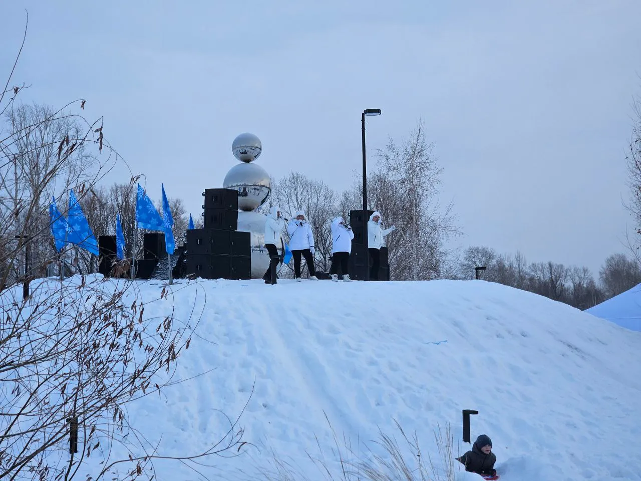 Пожалуй, остальные фотографии я сложу бонусом в конце поста, а пока немного об организации праздника. Все время, что мы там были и велось строительство снеговиков, с холмика лилась музыка и настоящее пение. Это весьма круто создавало настроение.