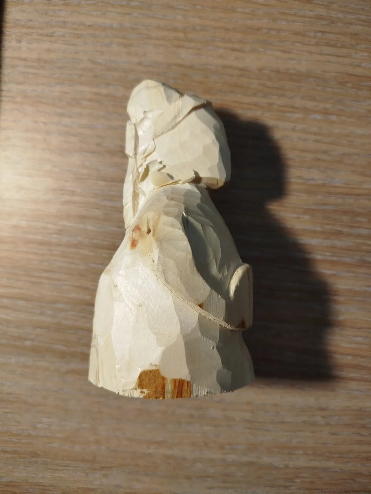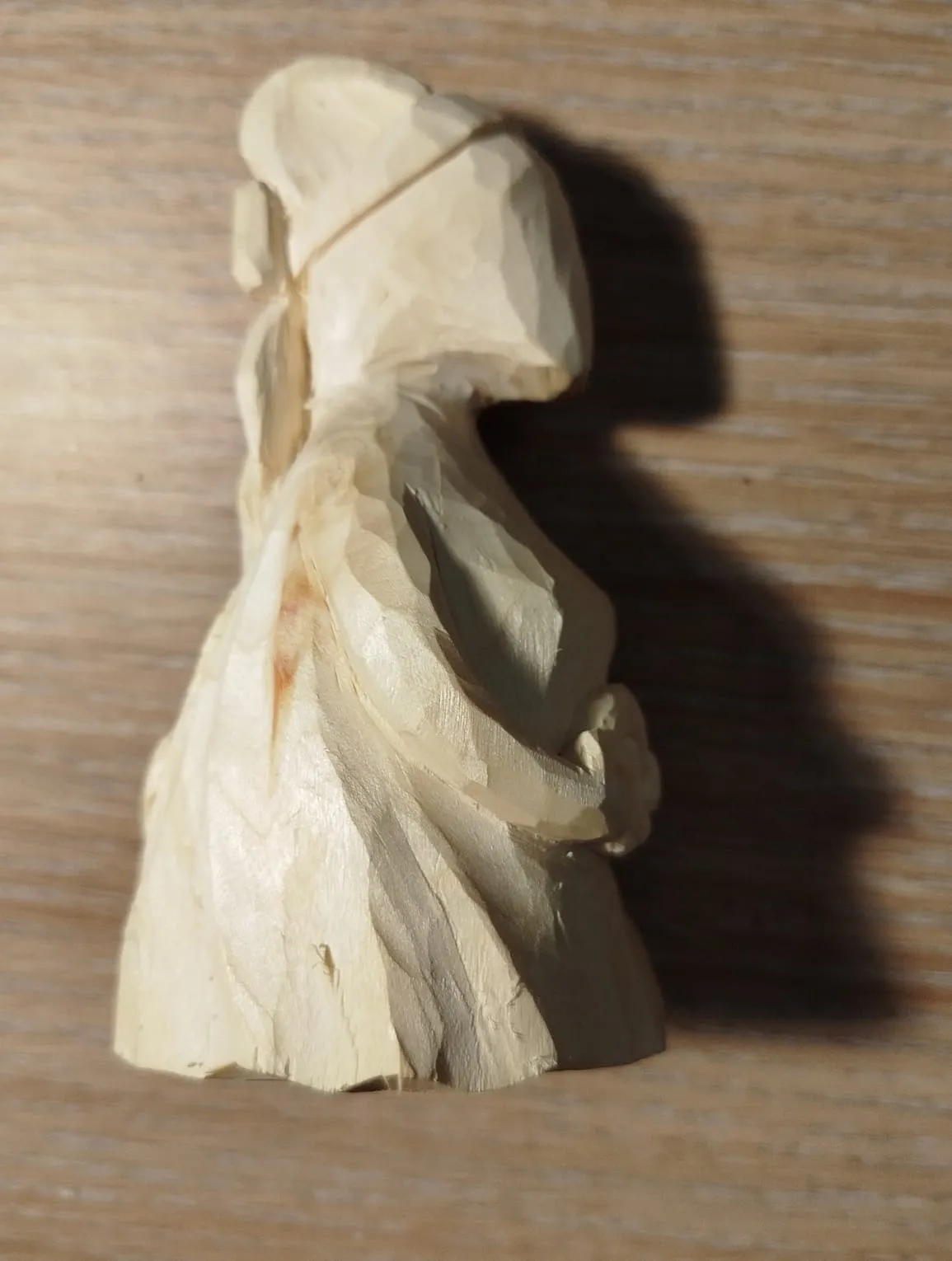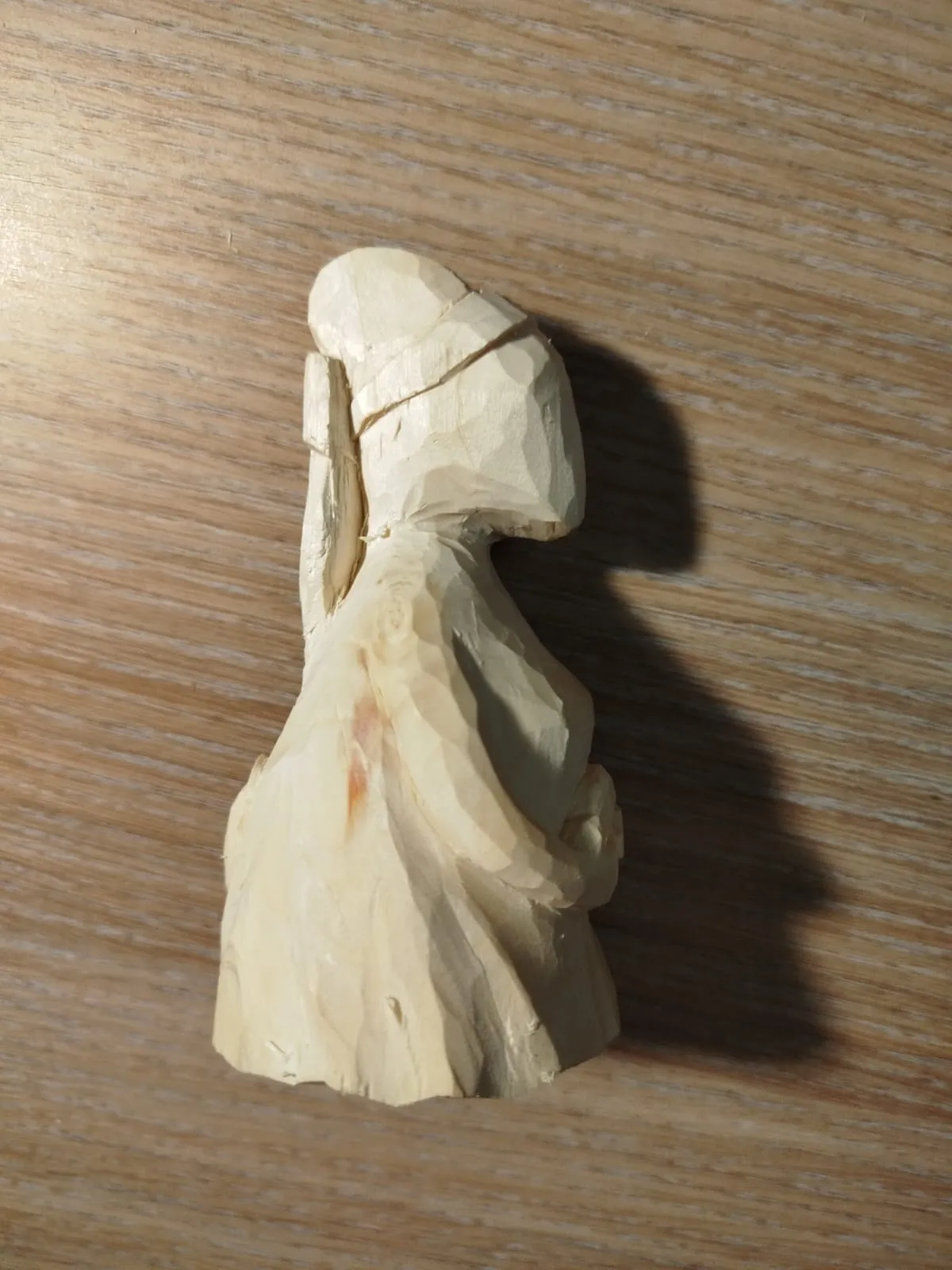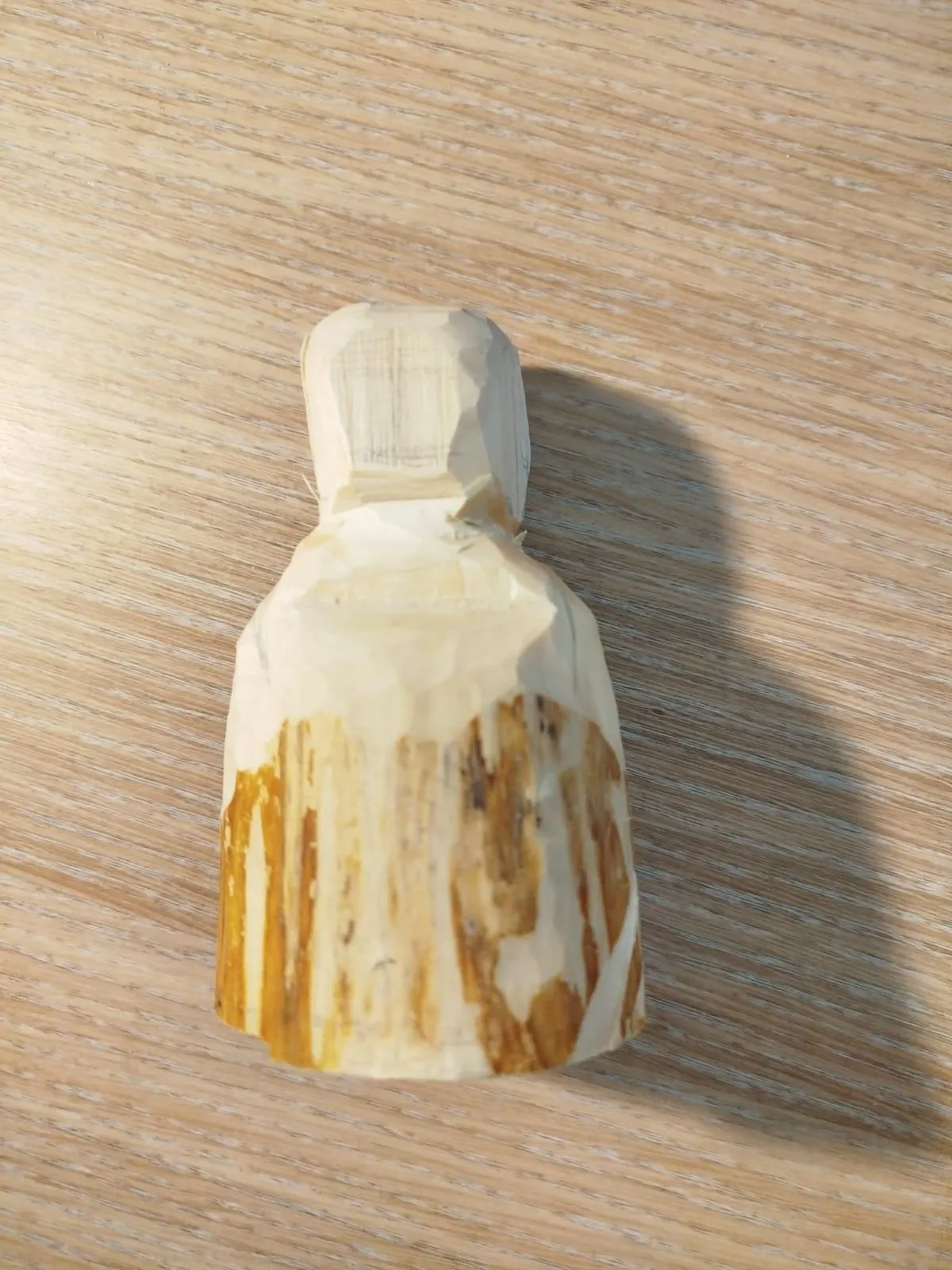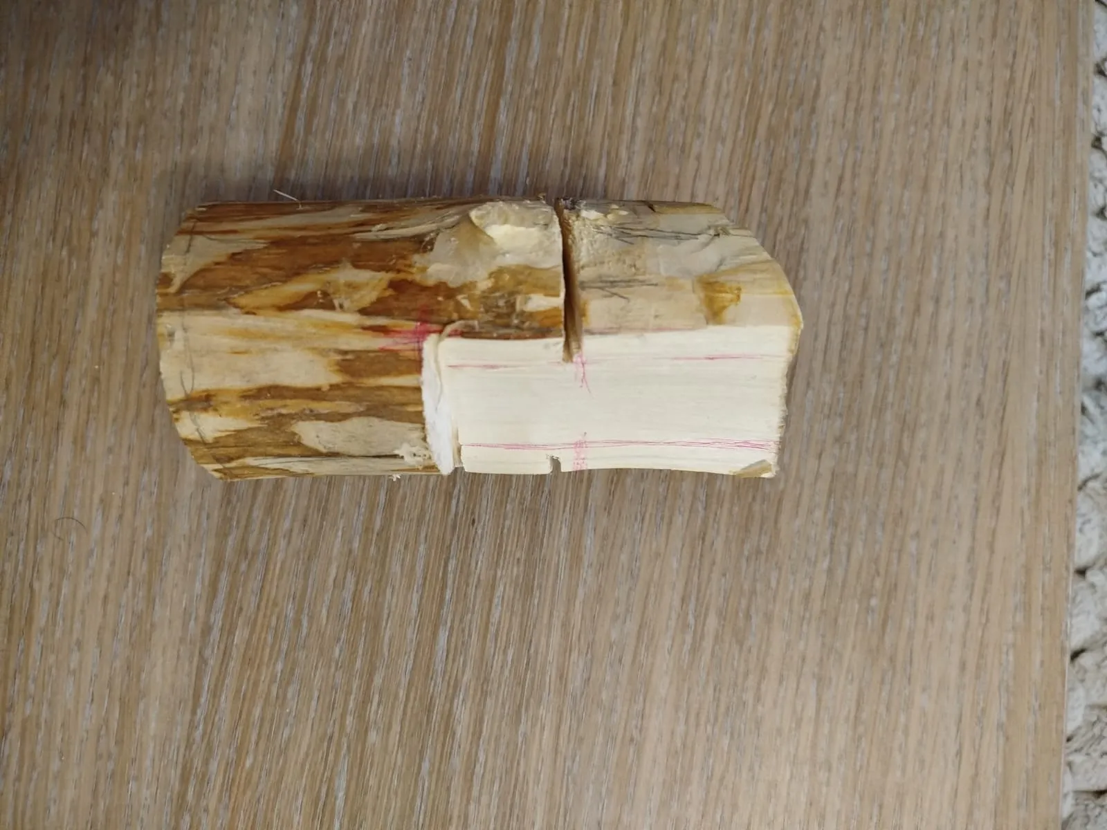 Кусок полена с сучьями, что несколько затруднило работу. От куска отрубила лишнее: