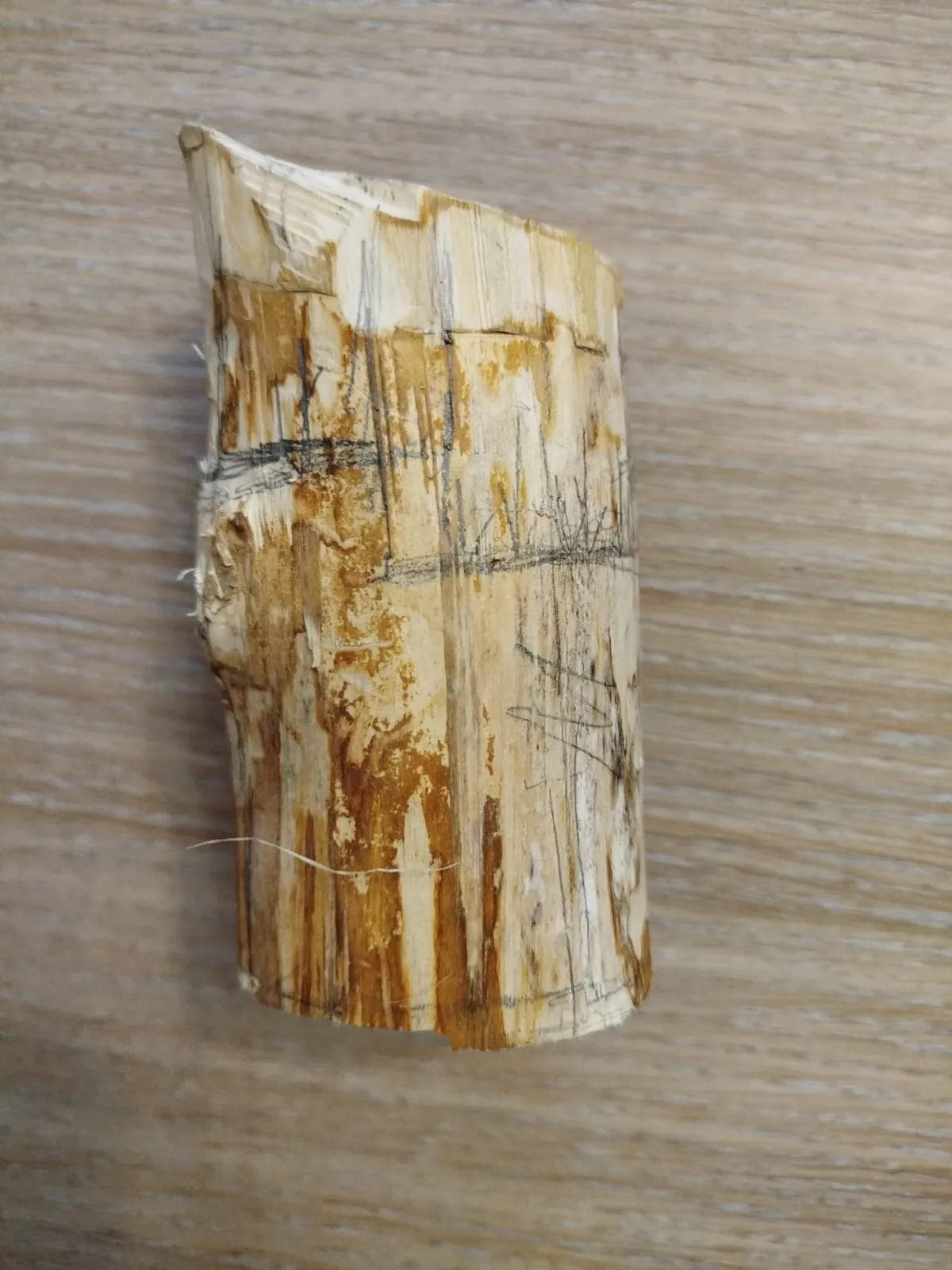 Потом найден подходящий кусок полена. Расчерчен.