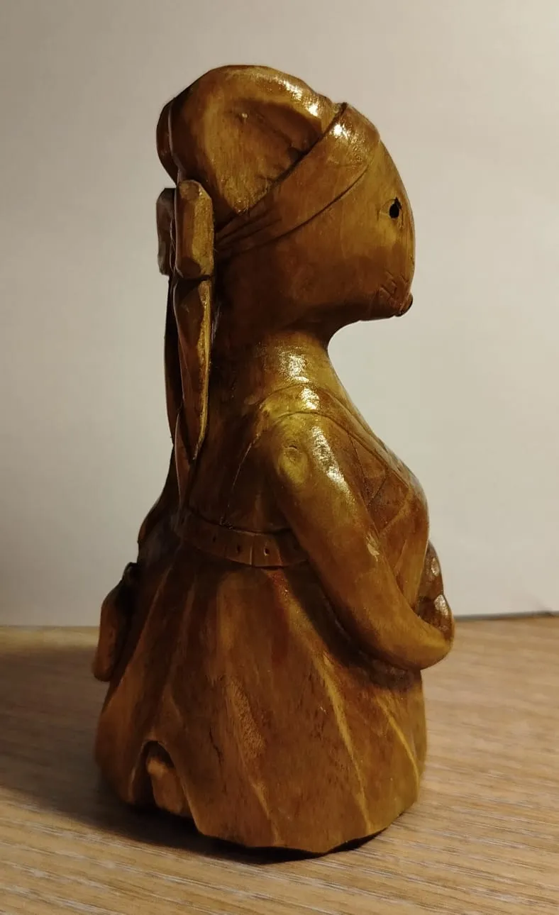 Инструмент, как обычно: нож-косяк в основном. И по мелочи несколько стамесок. Морилка орех водная. Размер - на рисунке: высота около 10-11 см.