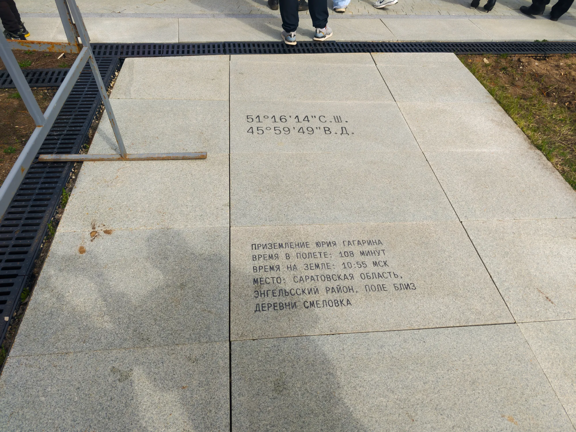 Место приземления спускаемого аппарата Ю.А. Гагарина ". это ещё 3 км от входа, но в другую сторону.