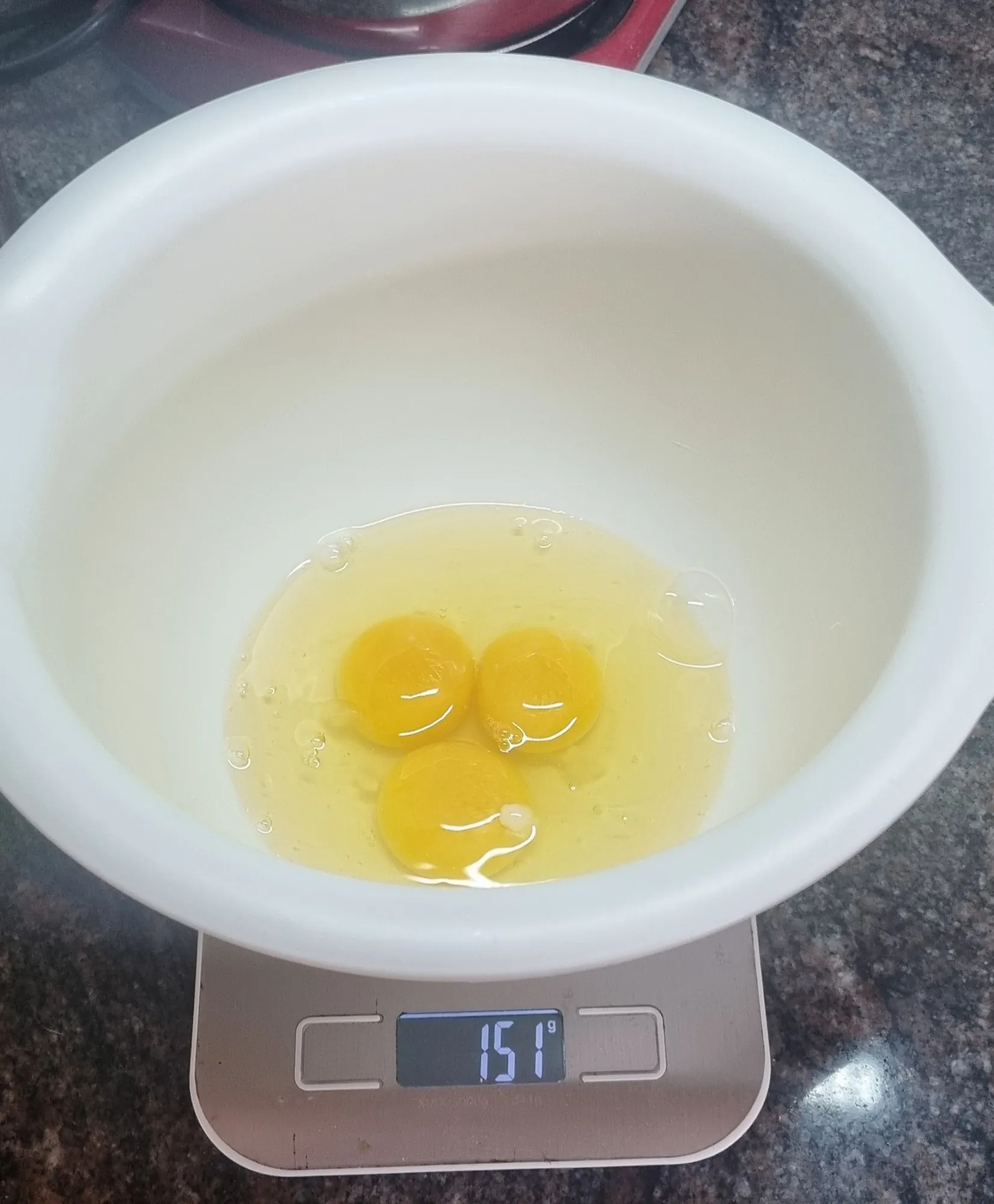 Итак, приступаем к готовке! Возьмём три яйца. Хорошо бы комнатной температуры, но я ленивая жопа и блины будут такие же.