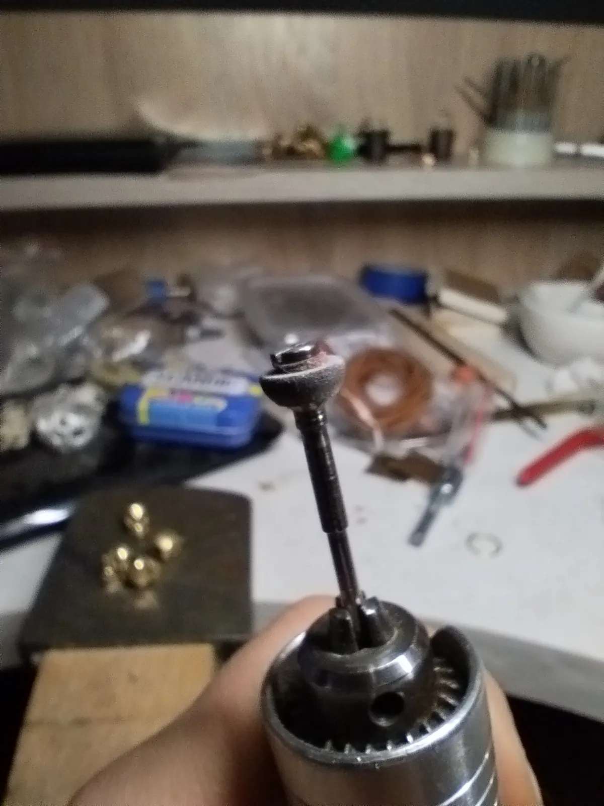 На полированную латунь раствор чернения (каас) не ложится, поэтому в разные технологические и не очень отверстия можно лезть без фанатизма. Но хорошо б чернение прилипло к металлу получше- прохожу по черепушкам абразивным волокном: