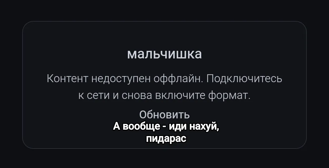 Мальчик: переподключается, чтобы не быть оффлайн Мужчина: дрочит по мамяти на превьюшку