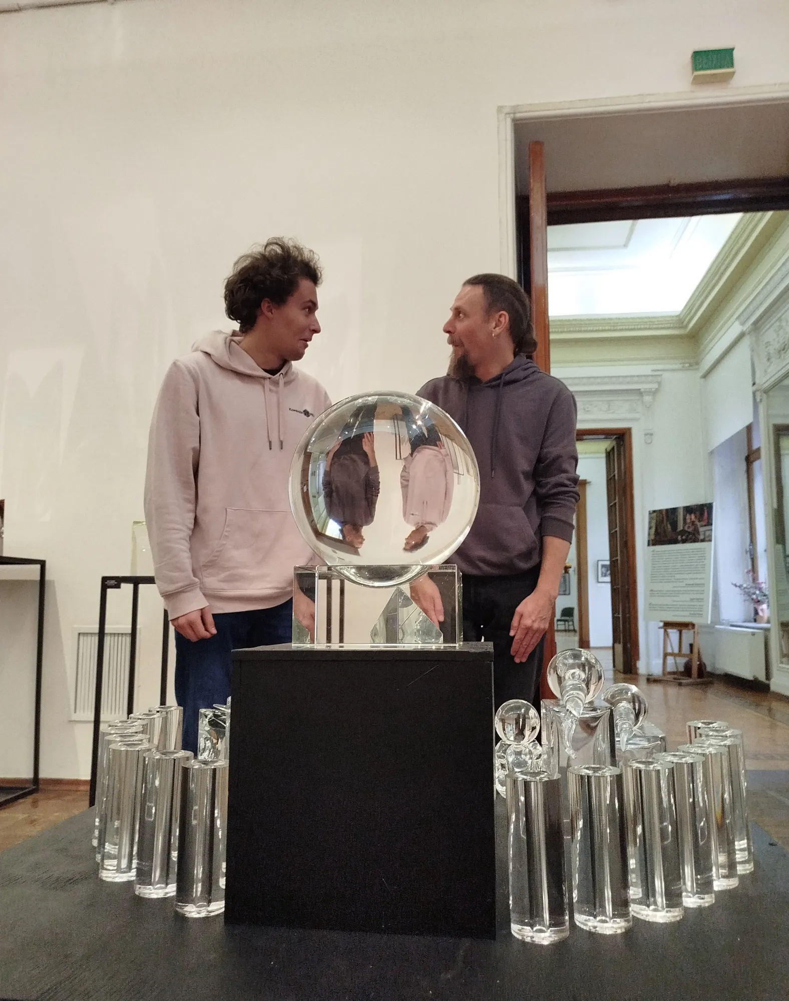 Композиция "Тотальное нашествие". Фигуры выставлены так, что в свет в каждой отражается и преломляется многократно, с какой стороны ни посмотреть.
