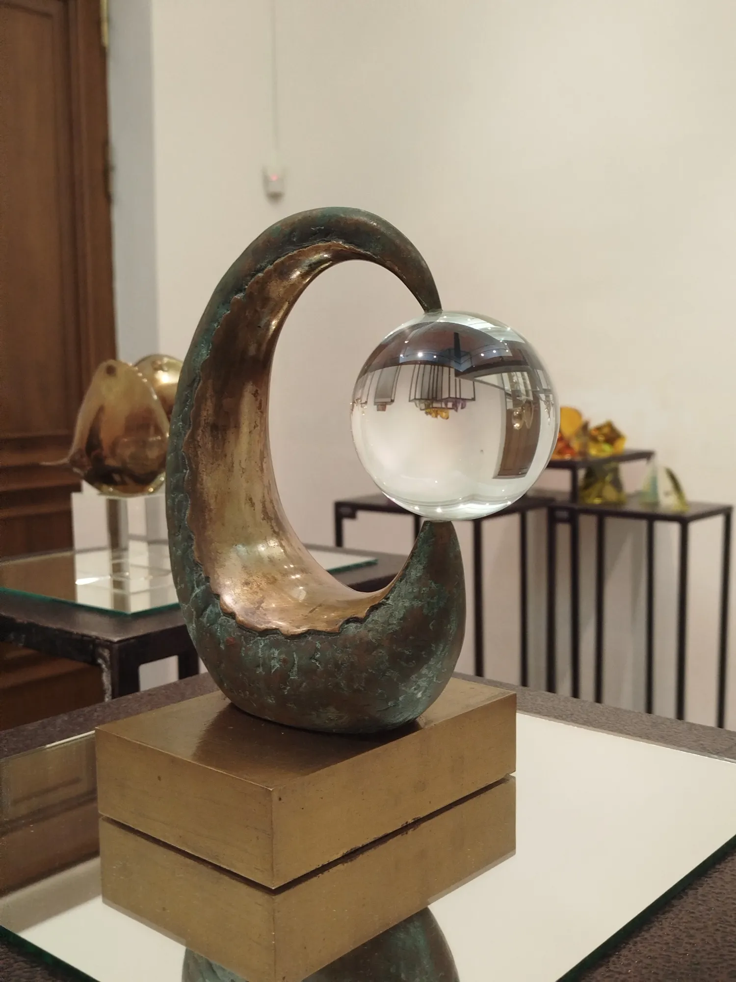 "Луна и полумесяц". Самое вкусное- на потом. Я в восторге! Наверное, потому что тут есть металл- медный сплав, скорее всего. Больше всего мне понравилась эта работа, представляю каких трудов стоило запихнуть одно в другое (там только сверху клей- или как?).