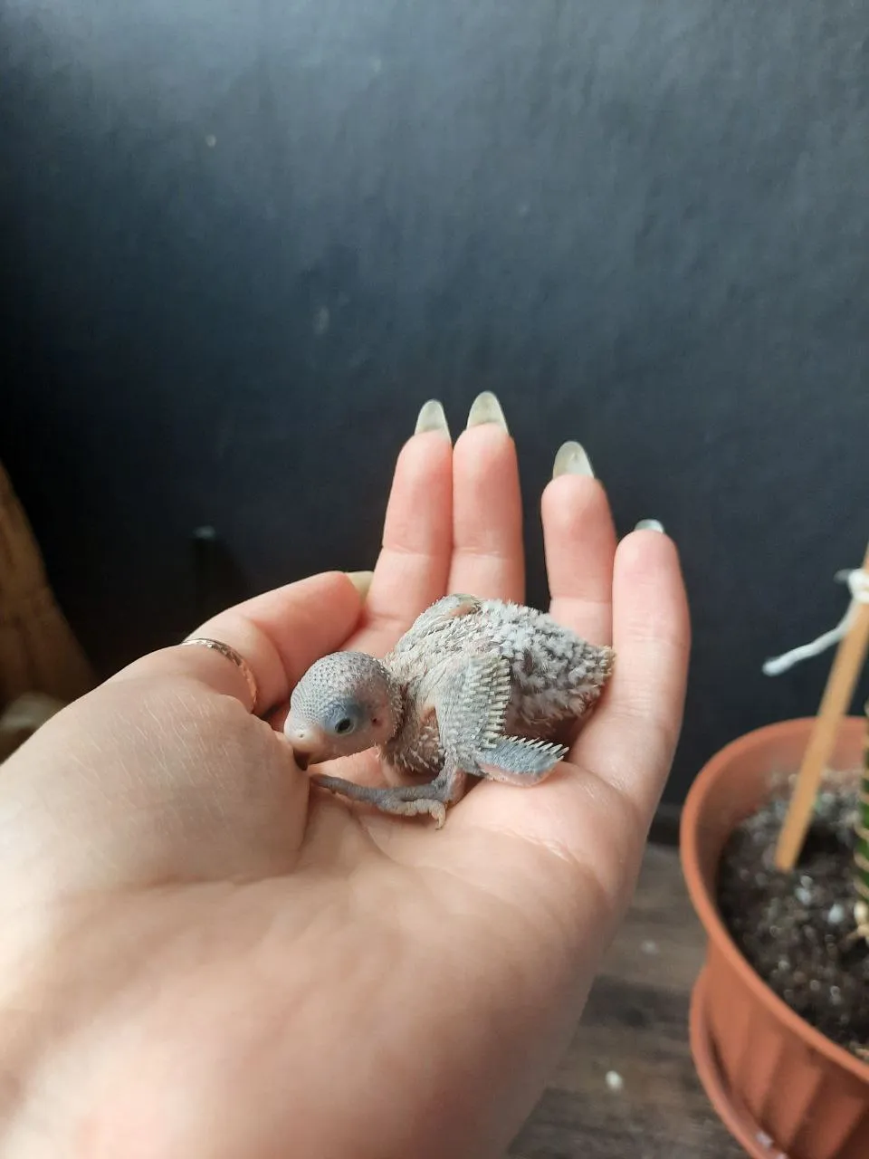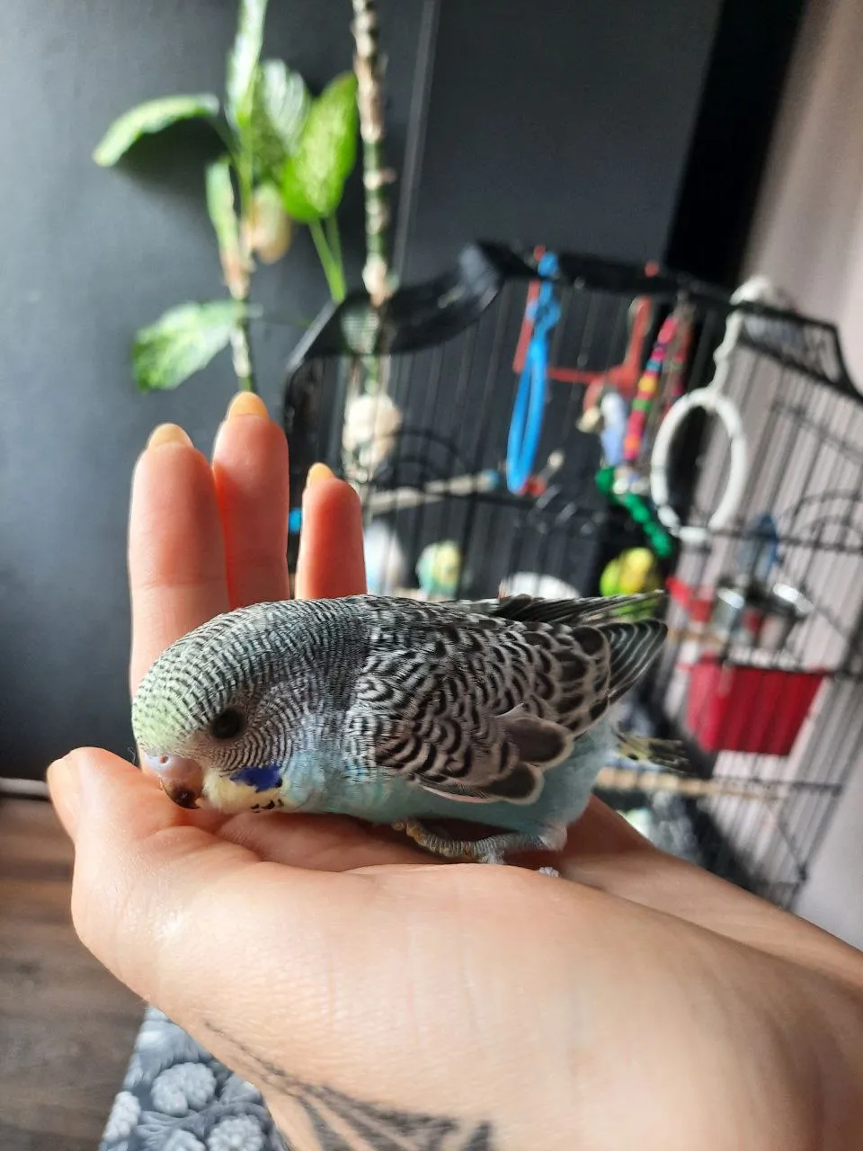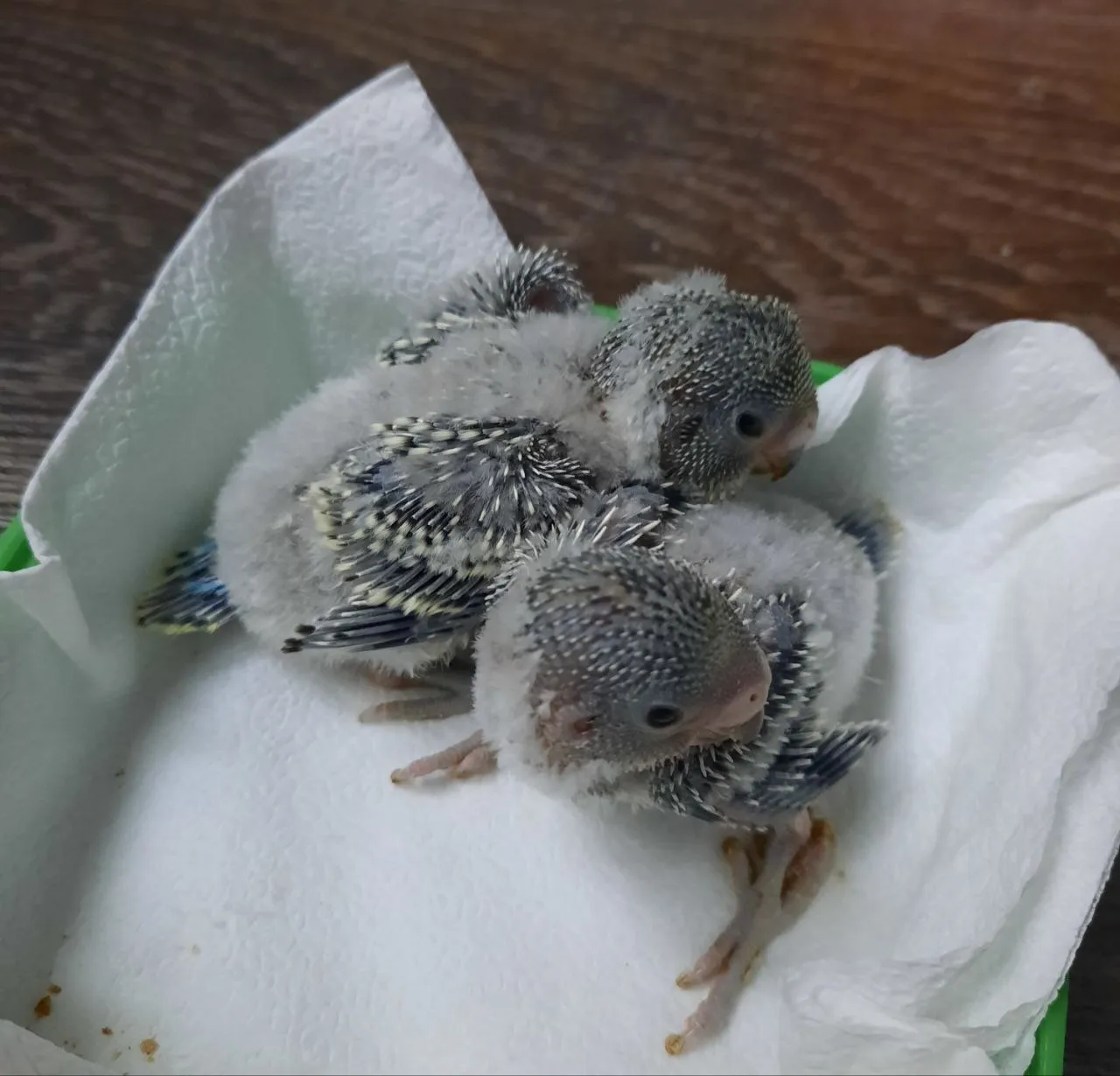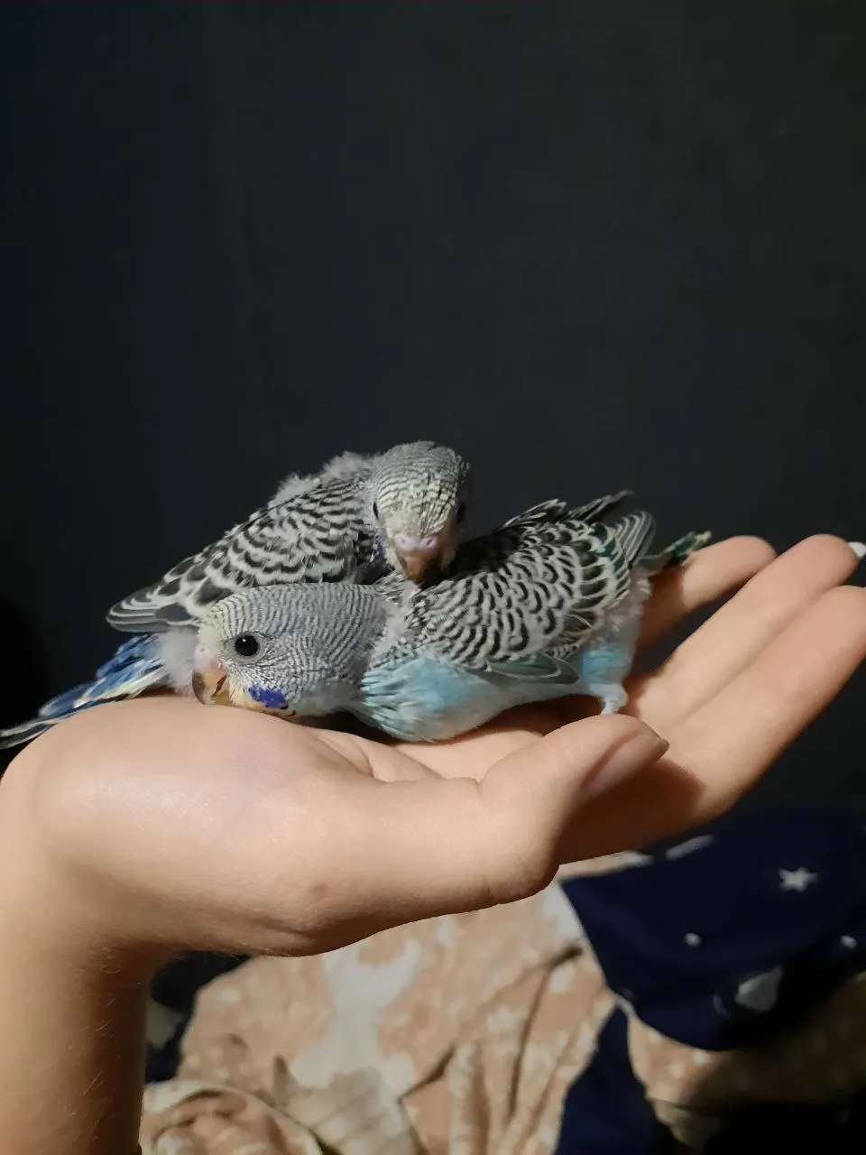 Позже к ним начали прилетать и родители, но этот не отступал. Никто и не был против. Но мелкие пытались жрать и сами (очень быстро научились, кстати). В первые дни я им ещё кашу давала пшеничную, но потом они проявили интерес к зёрнам, как у взрослых и начали мусолить их))