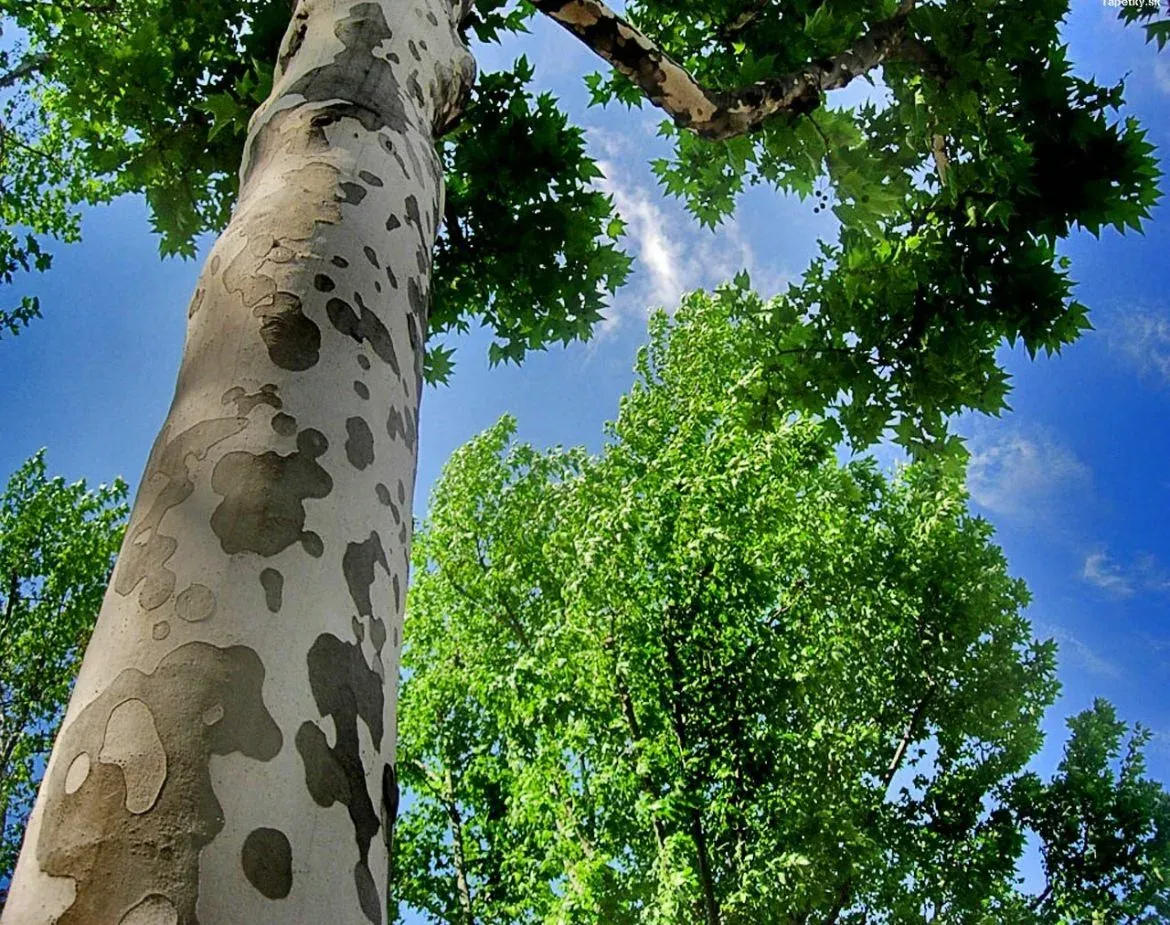 Это же платан вроде? У него ещё ствол как будто маскировочной сеткой обмотан