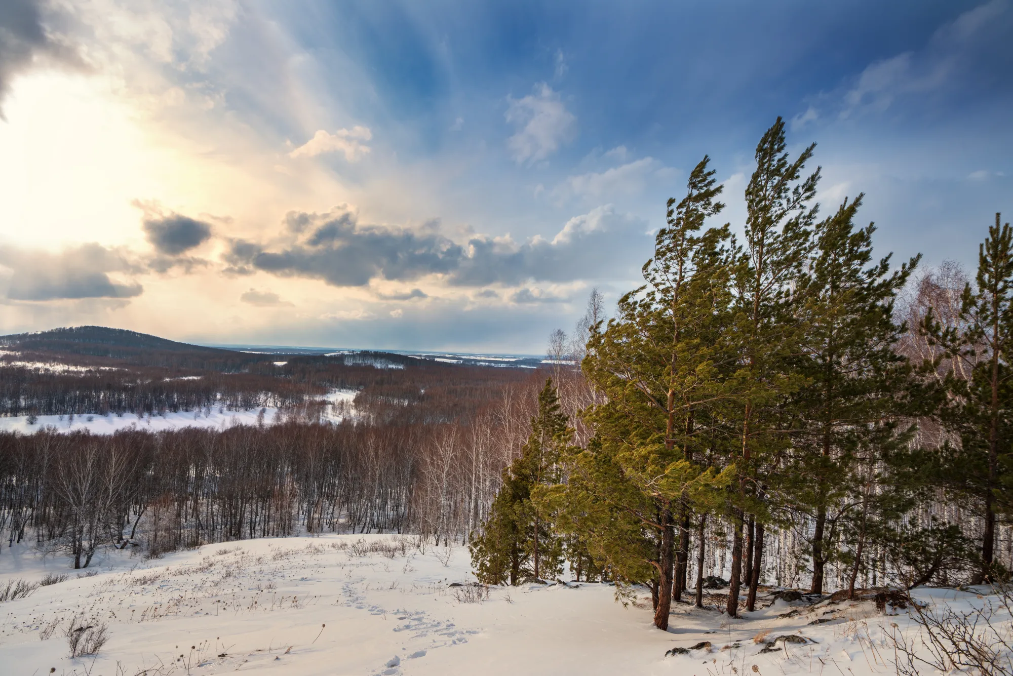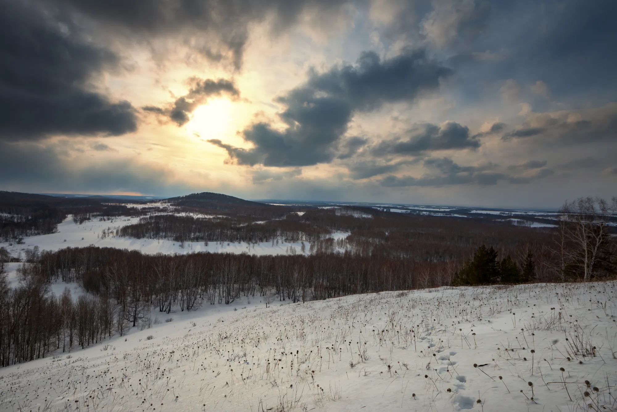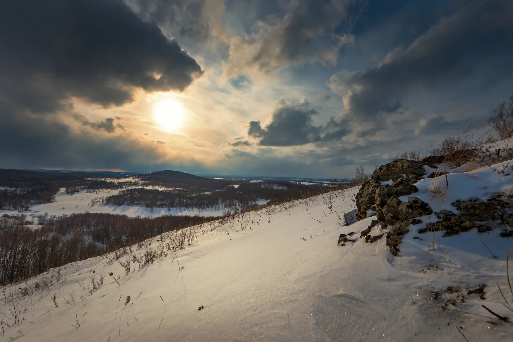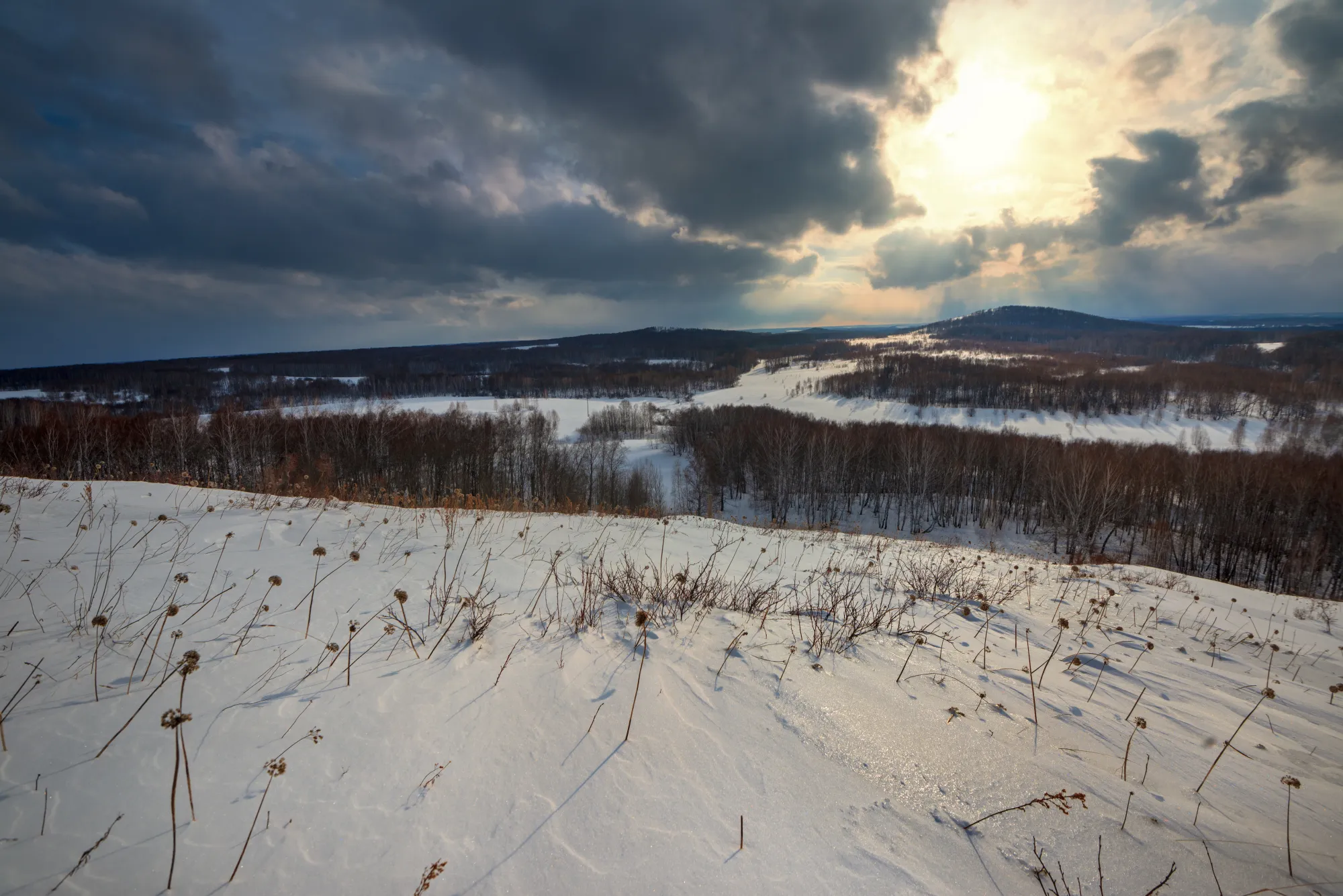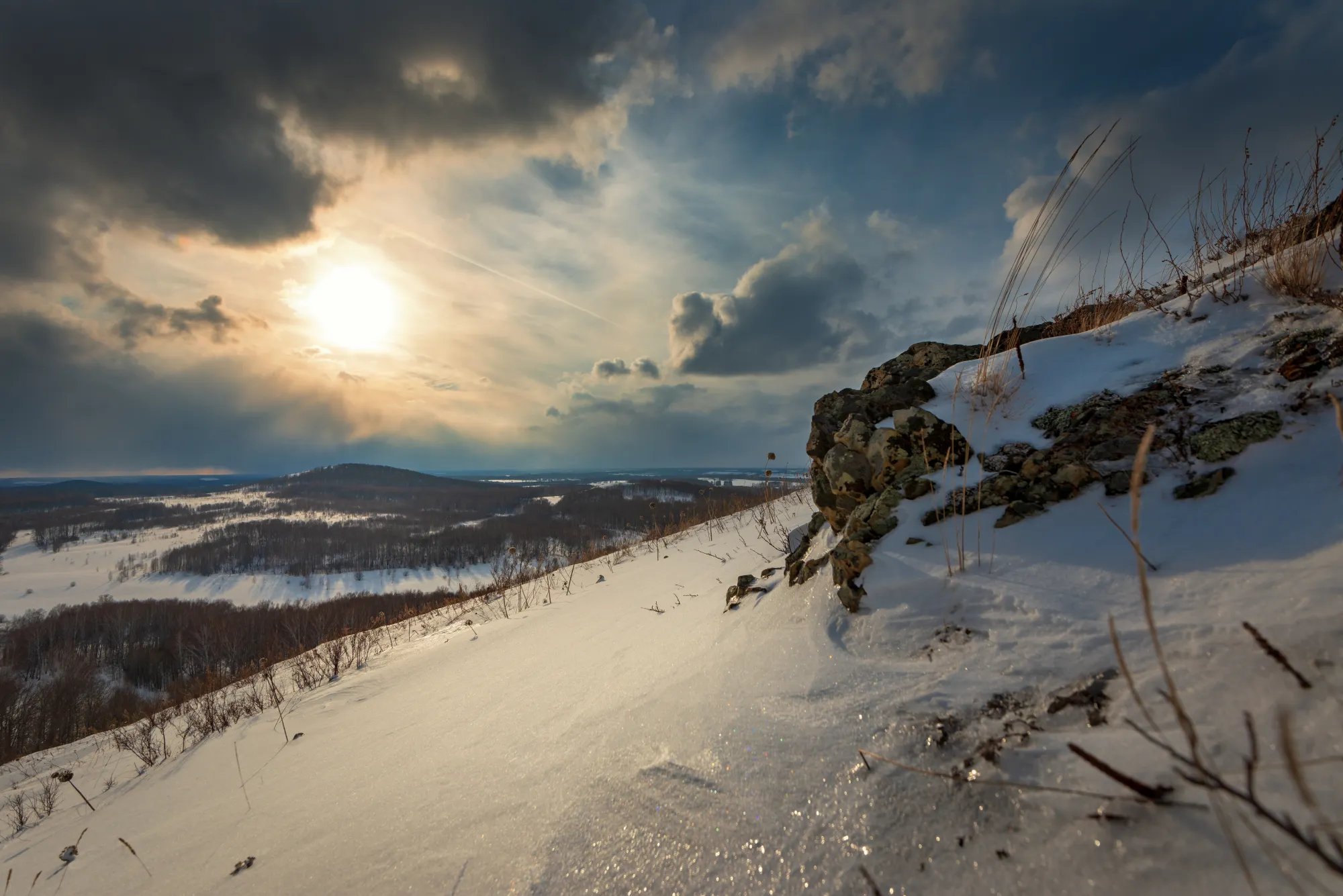 Я теперь могу снимать на 16 мм фокусного расстояния, с роскошной детализацией и без дисторсии! Раз в кадр влезает столь много, испытать объектив хотелось именно там, где есть красивый вид и большой простор. А значит нужно двигать на природу, на мои любимые Буготакские сопки. Де-факто всё ещё зима, но температура воздуха уже позволяет гулять долго и неспешно и не околеть. А значит можно успеть поснимать зимние пейзажи.