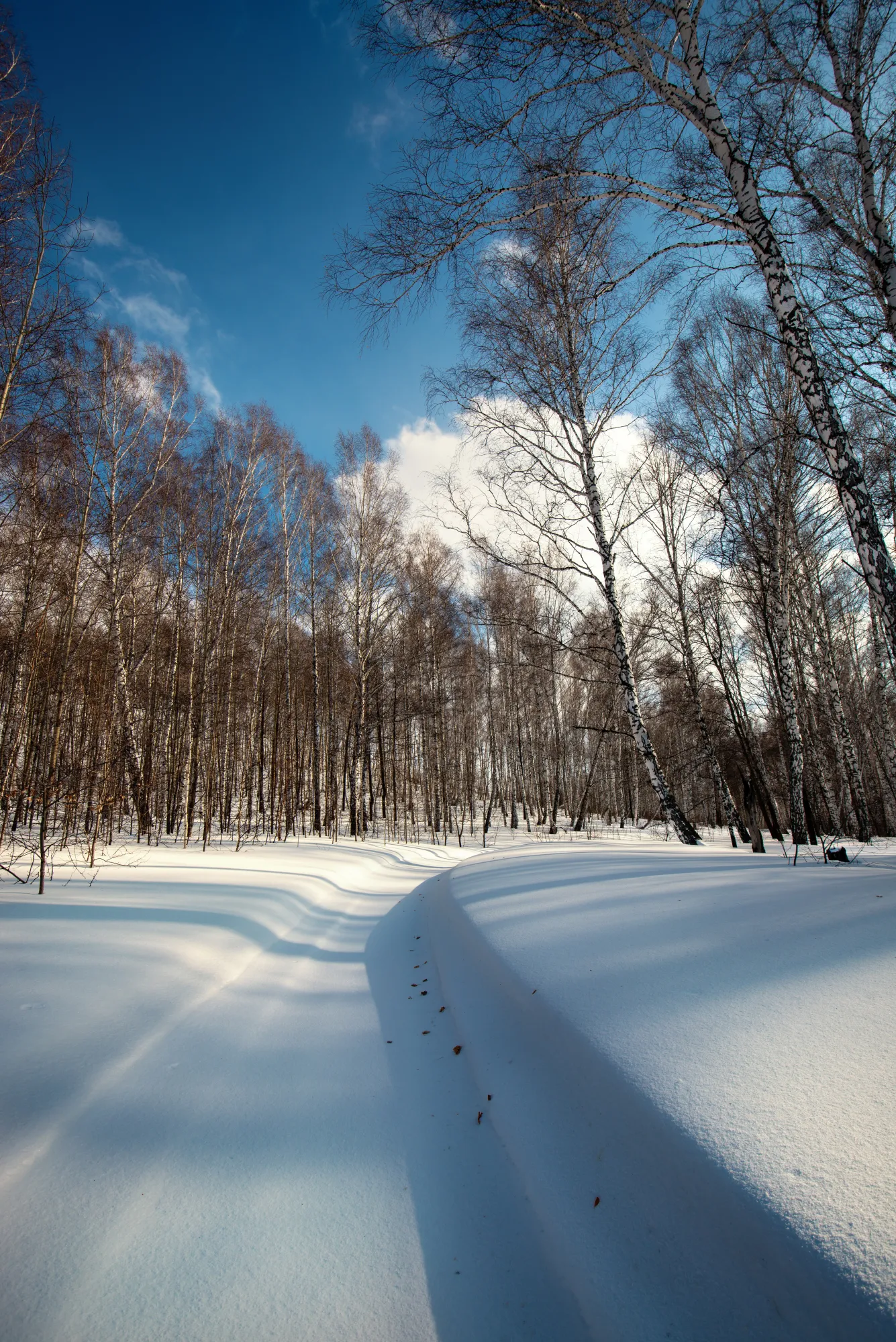 К своему удивлению я обнаружил лыжню, которой за день до этого не было. Видимо утром какой-то лыжник тоже решил подышать воздухом. Мне же лучше - идти по проторенной дорожке. Однако, через 500 метров лыжня кончилась, а характерные следы лесенкой говорили о том, что лыжник решил "ну его на фиг", развернулся и пошёл обратно. Так что дальше я поковылял по сугробам сам. Небыстро.