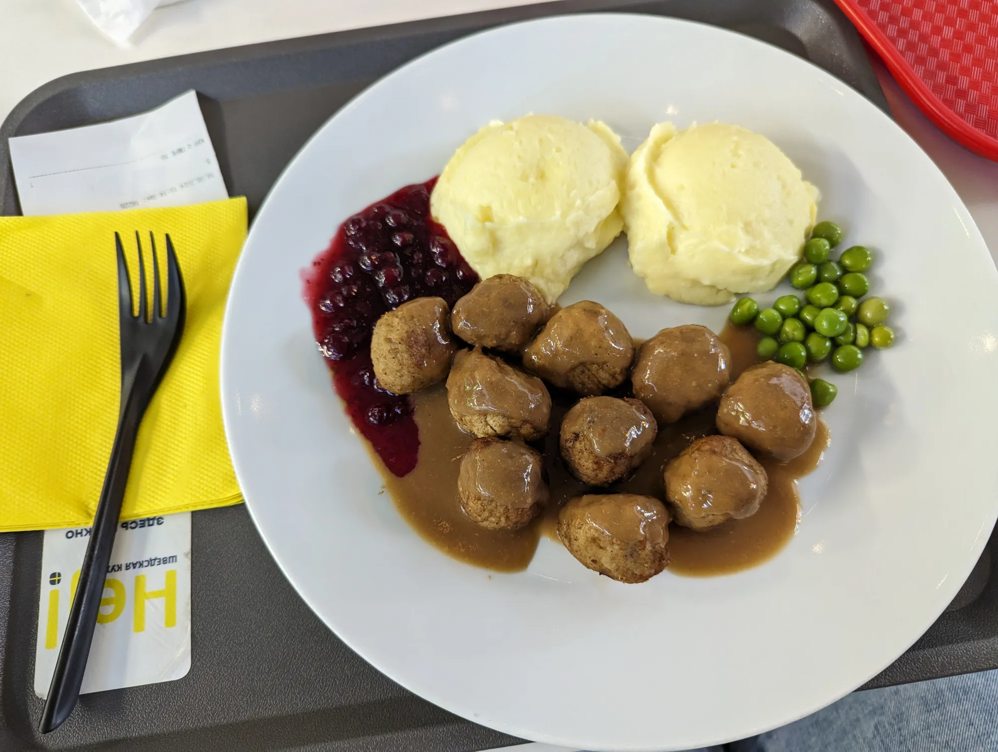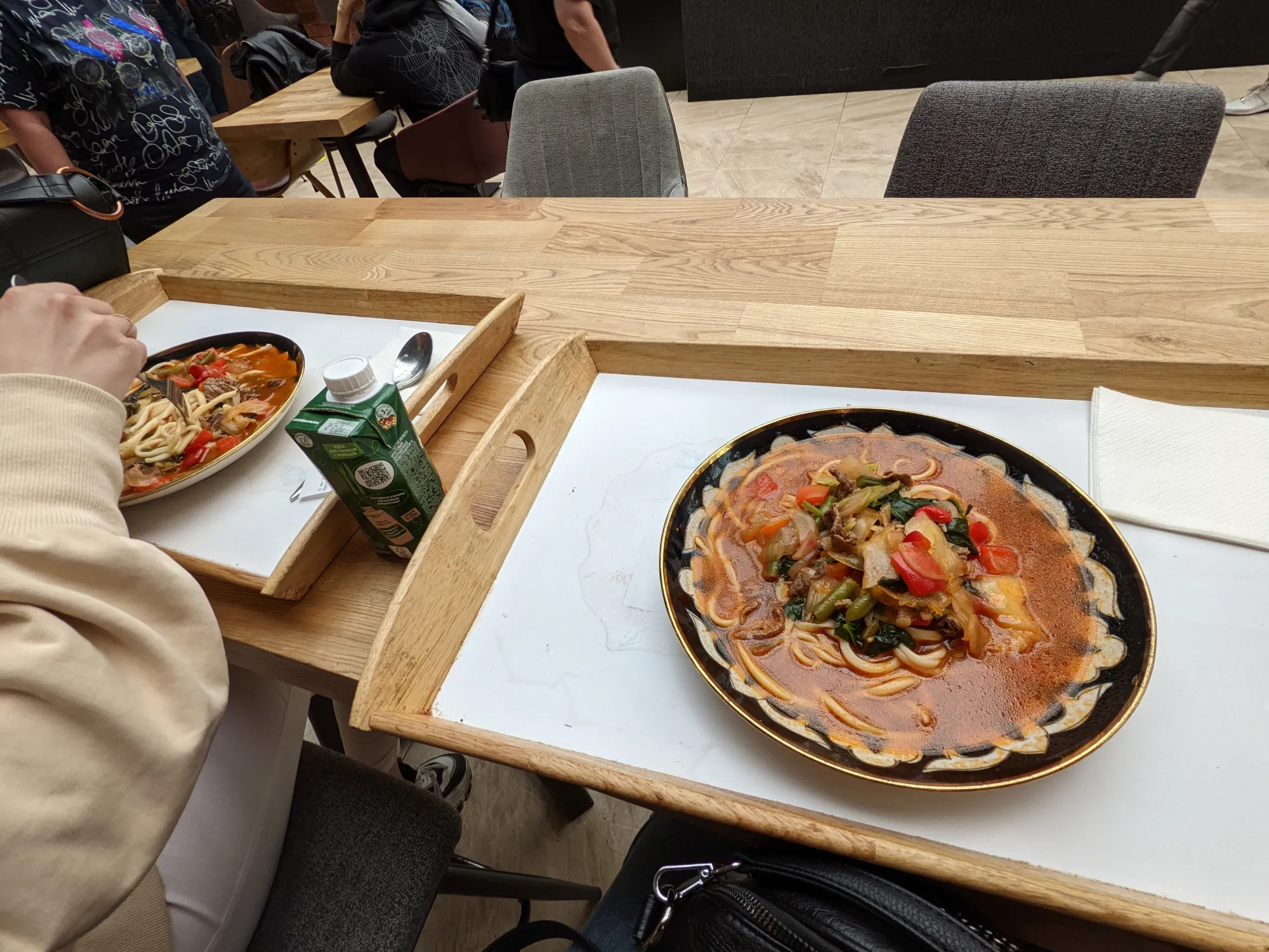 Это в Новосибирске. Из всех представленных я захотела только пюрешку с фрикадельками. Разогретое, но вполне вкусное. В упор не помню, что это за фудкорт и где, но принцип точно такой же.