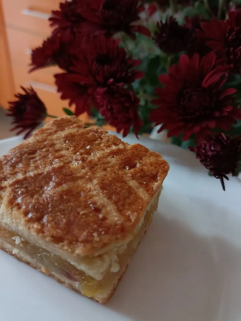 Часть 2. Здесь уже претензии только к названию. Я честно пытаюсь в саратовских пекарнях найти хотя бы что-то вкусное из выпечки, потому что у нас как на подбор пекут хреново, и выпечку я ем либо в других городах, либо пару раз в год пеку сама, когда не лень. И вот недавно заметила в одной из пекарен нечто под названием "штрудель с изюмом". И вспомнила, что в мои студенческие годы такое было, называлось это "струдель" и это было даже вкусно (не только потому, что студенты жрут всё что не прибито). Короче, это порезанный на квадратики пирог из похожего на песочное, но менее хрустящего теста. Фотку не сделала, поэтому покажу то, что максимально похоже на него - лимонник. Там такой же квадратик, только с изюмом. А ещё в одной пекарне, как раз в той, где этот лимонник купила, обнаружила ещё несколько вариантов таких "штруделей" - с вишней, с яблоками и корицей и (это было божественно) с паслёном! Претензий ко вкусу нет, даже я, не любитель булок, съела ) Но почему они это называют штруделем, для меня осталось загадкой.