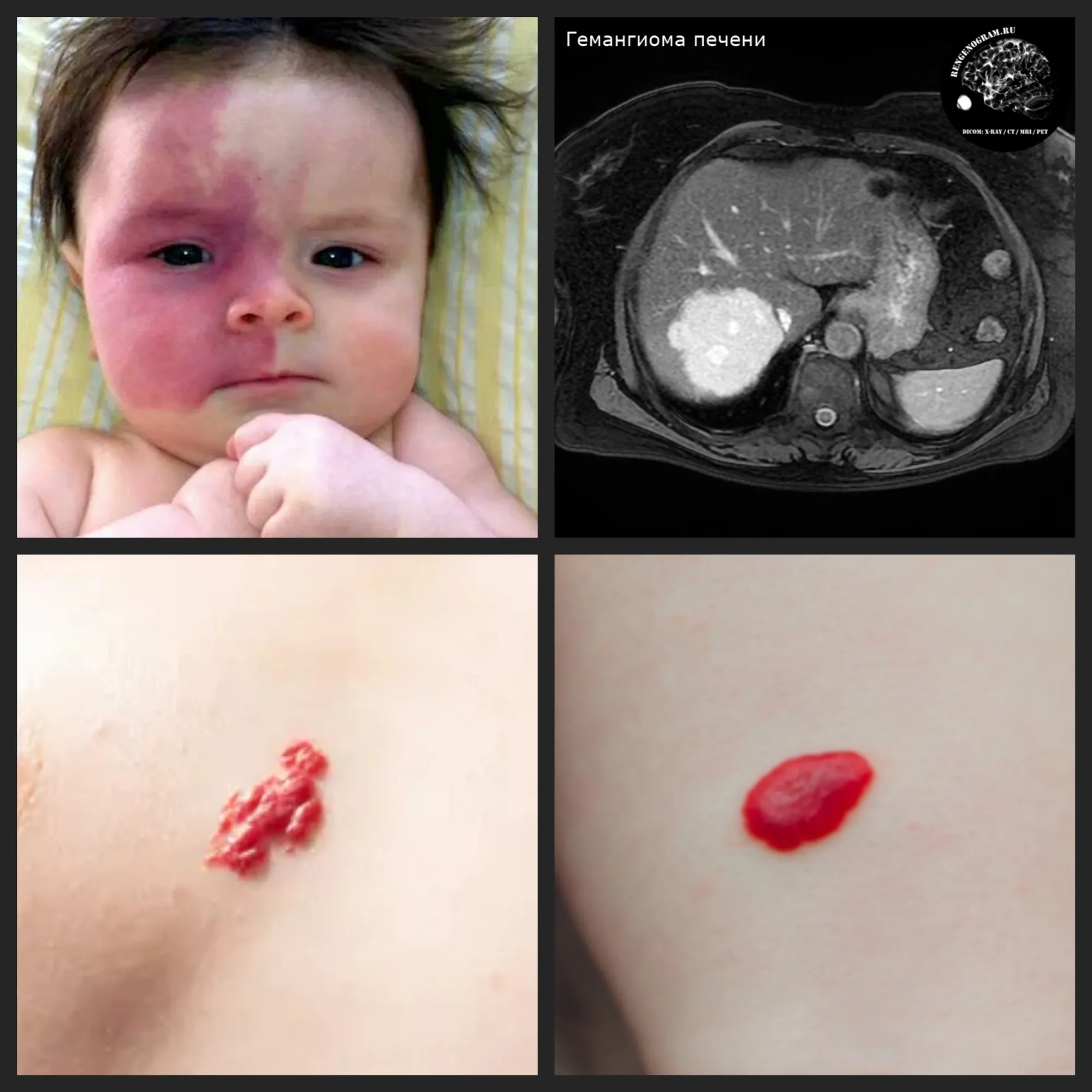 Гемангиому в народе называют родничками или красными родинками. Это доброкачественное образование красного или фиолетового цвета, которое может быть плоским или выступать над поверхностью кожи. Гемангиомы часто возникают на голове плода ещё до рождения, но иногда встречается и на туловище, руках, ногах, а также внутренних органах (например, печени). Каждый тридцатый новорождённый появляется с гемангиомой. У взрослых новые гемангиомы появляются не так часто.