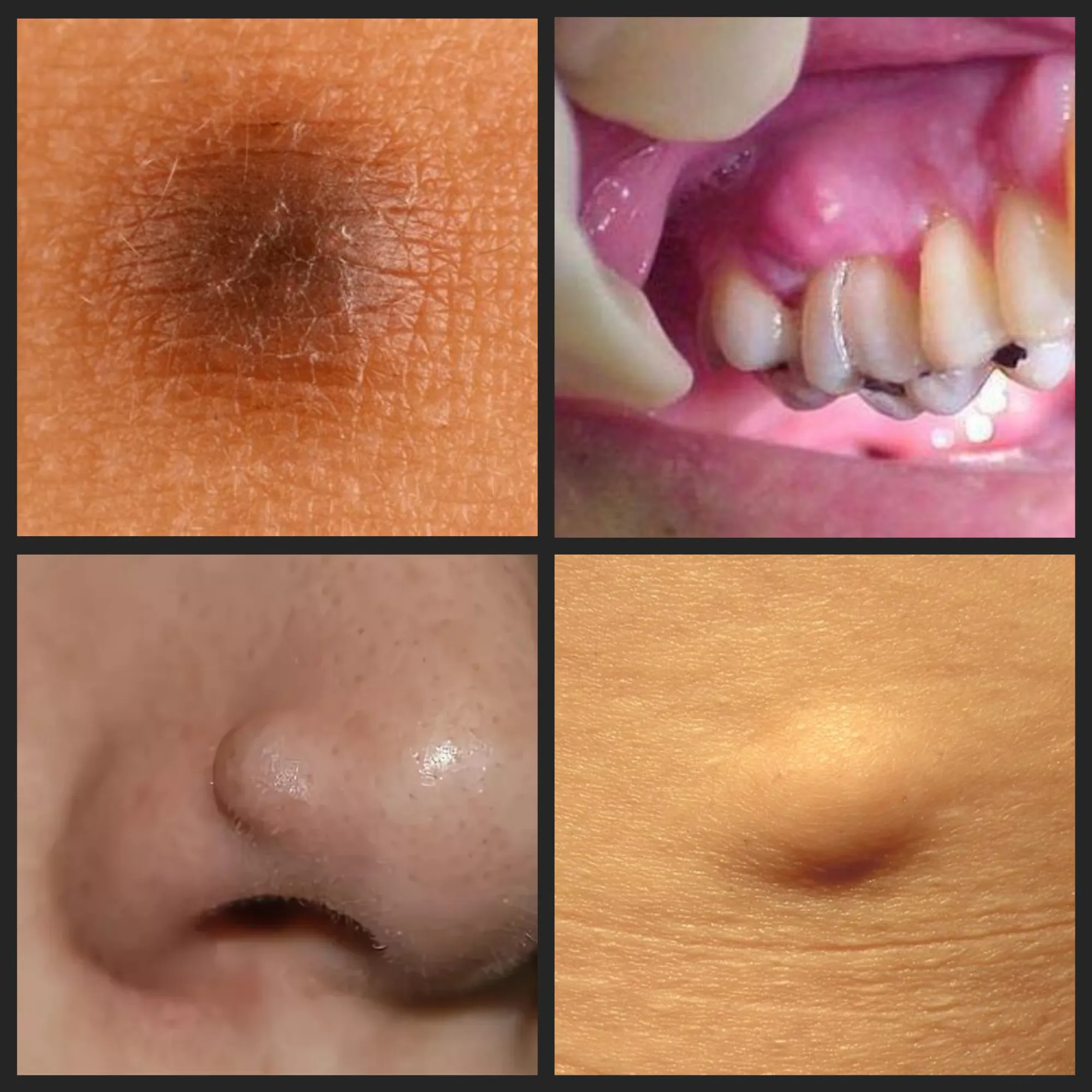 Невусы - кожные образования состоящие из меланоцитов, известны как родинки или родимые пятна. Могут быть как плоскими и гладкими, так и выпуклыми и бугристыми. Имеют четкие края и округлую форму. Цвета варьируются в оттенках коричневого и серого, могут быть так же черными или даже синюшными. Из невусов могут расти волосы, это нормально. По плотности родинки не отличаются от окружающих тканей, т.е. их нельзя назвать ни более твердыми, как фибромы, ни более мягкими, как попиломы. Невусы могут расти на любом участке тела, в том числе и под кожей и даже в глазу на белке или радужке.