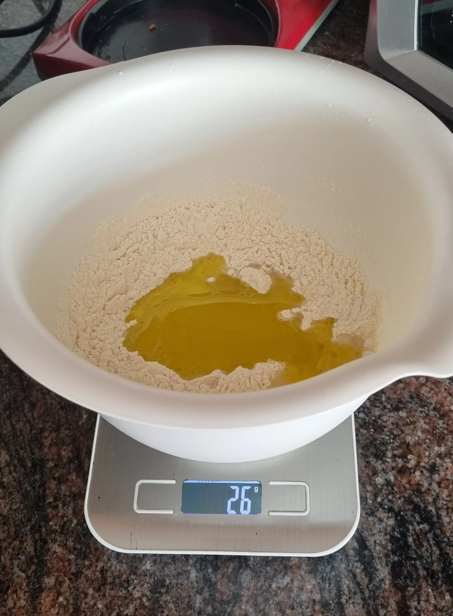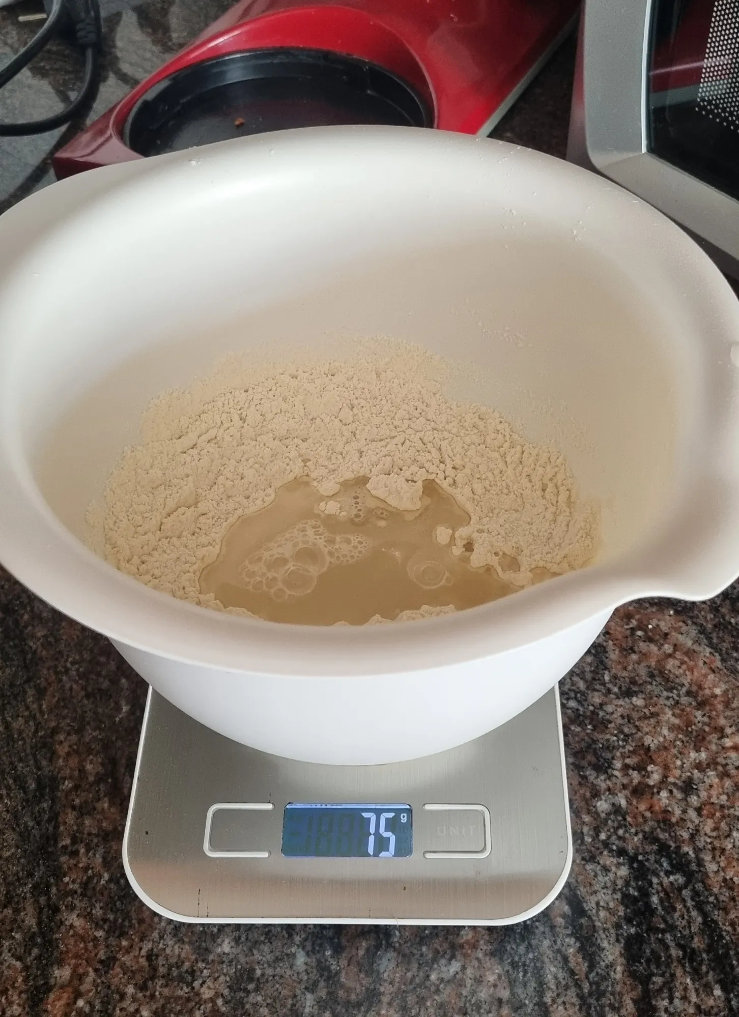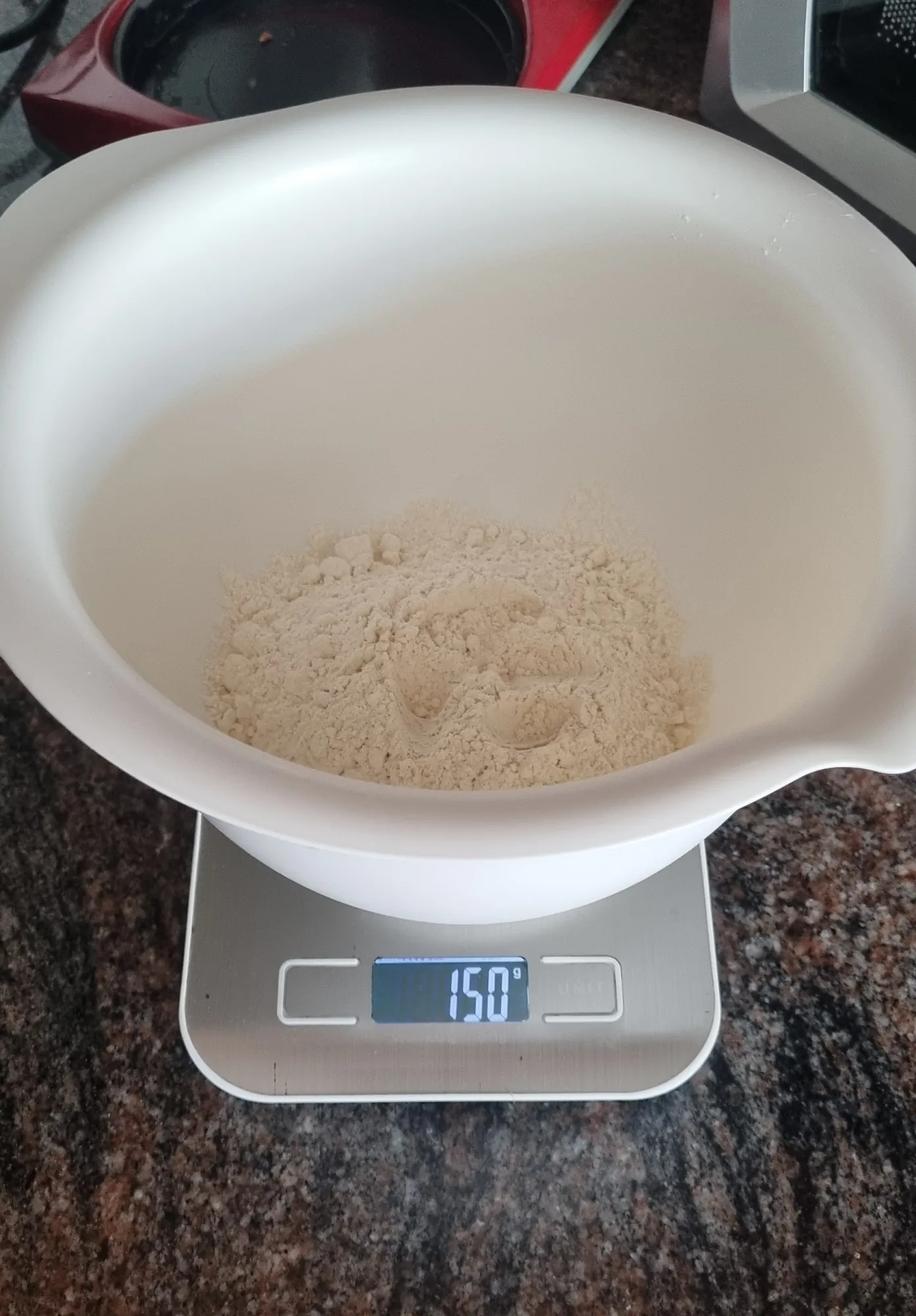 Взяли муки 150 грамм, добавили туда соли на кончике чайной ложки.
