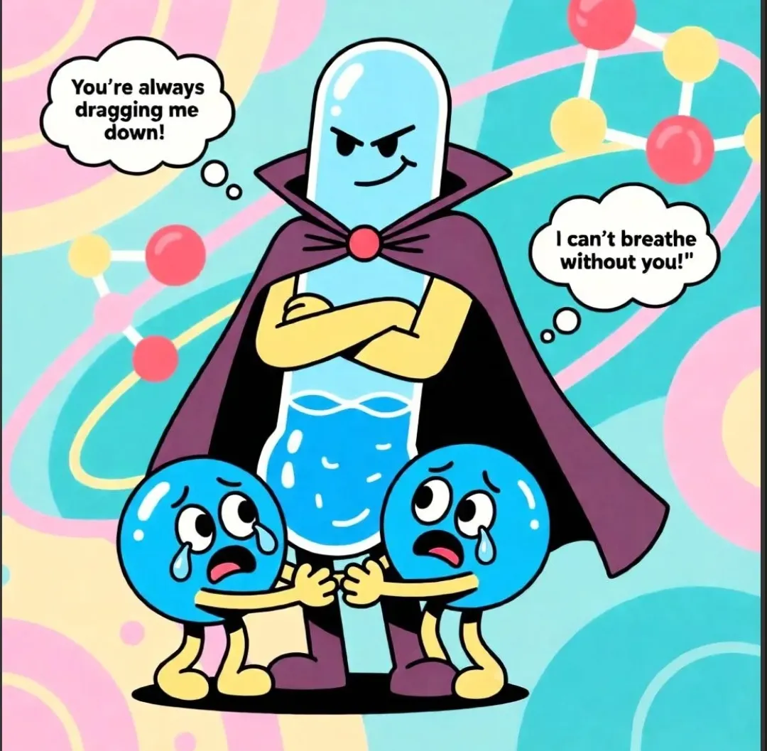 💦 Вода - это парочка-биполярочка состоящая в созависимых отношениях и все никак не расстающаяся. Не из-за любви до гроба, а потому что никто поинтереснее пока не подвернулся. H₂O означает: два водорода, один кислород, и море драмы.