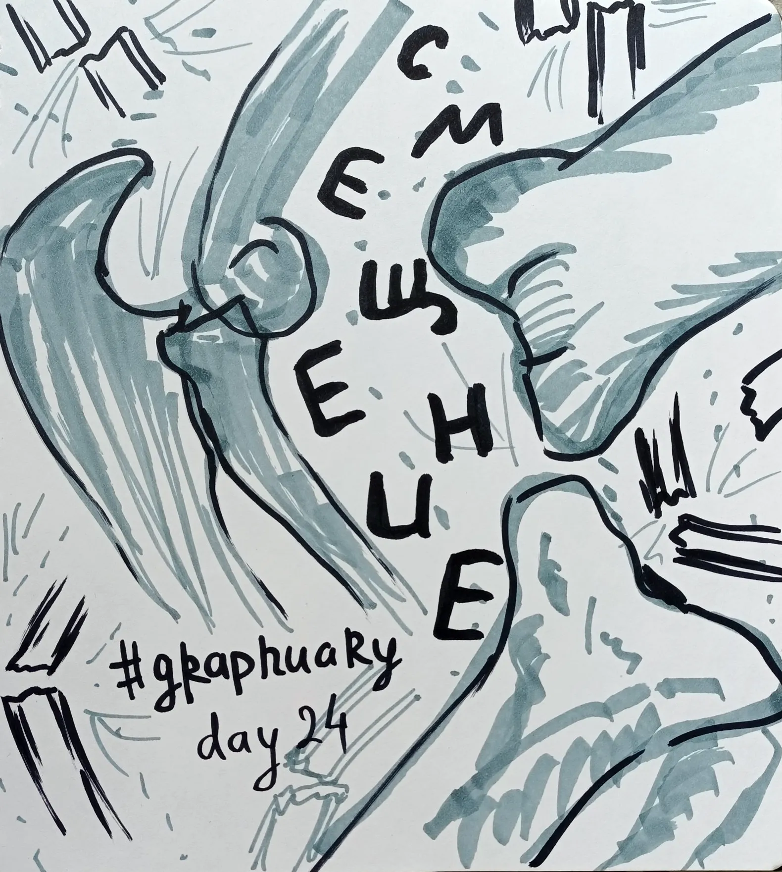 capybarystic Серия: Graphuary 2026 Опубликовано 2 часа назад [моё] Graphuary Челлендж Спиртовые маркеры Graphuary, день 24 Смещение Сегодня такая простая тема, 5 минут и готово ) Читать дальше...