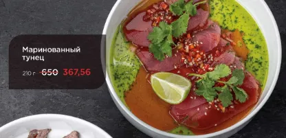 там была порция в 2 раза меньше этого тунца за 500 ррублей....