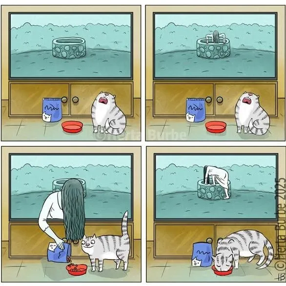 А кто сказал, что ему не насыпают сухого корма? Выдал вчера пакетик влажного корма, так он его и не стал есть. Требует натюрпродукт.