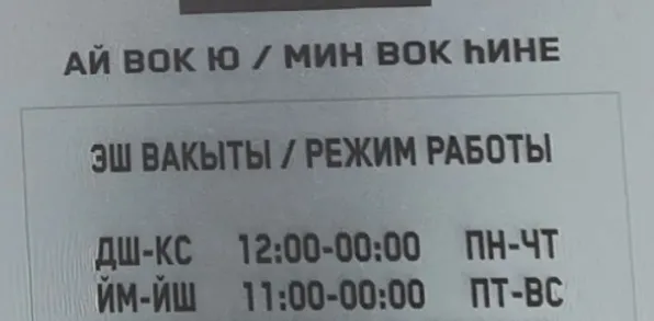 Это на башкирском, присмотрись к той же табличке, где часы работы видно))))