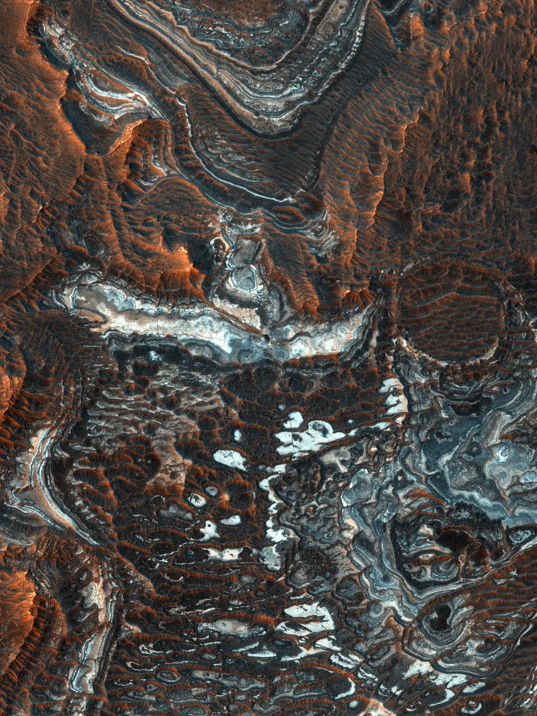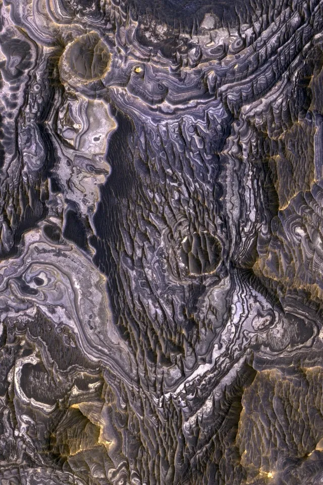 Марсианский каньон уходит на глубину до 5000 метров. Сейчас на его дне множество песчаных дюн, но отложения гидратированных сульфатов и минералов железа подсказывают нам, что когда-то он был заполнен водой.