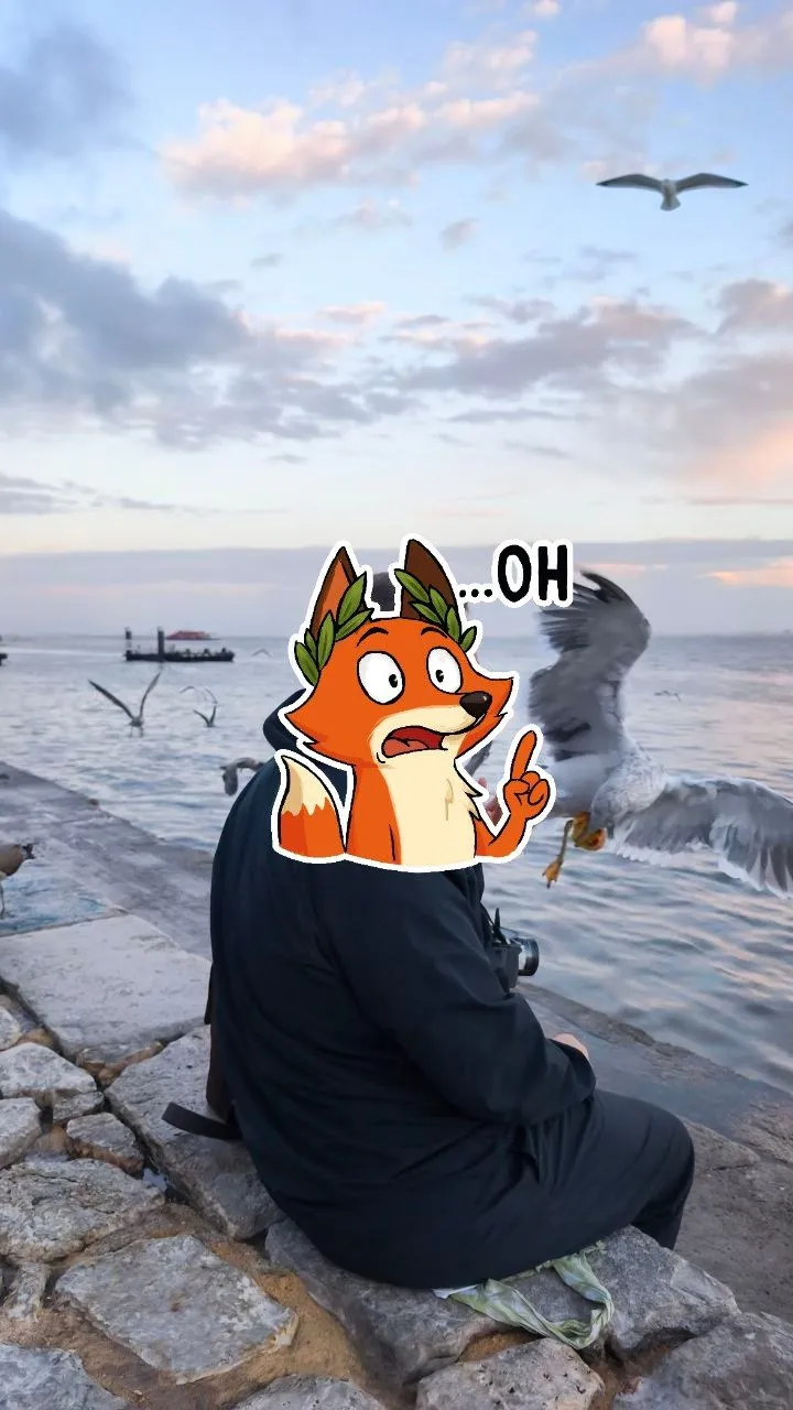 Всё получается, и обнаглев, говорю мужу: лучше ты меня сфоткай, это же лучше чем селфи. Стою, позирую на фоне чаечки, и тут одновременно происходят две вещи: я слышу крик "осторожно, она щас..." и мне прилетает в макушку тяжёлый удар клювом 😆