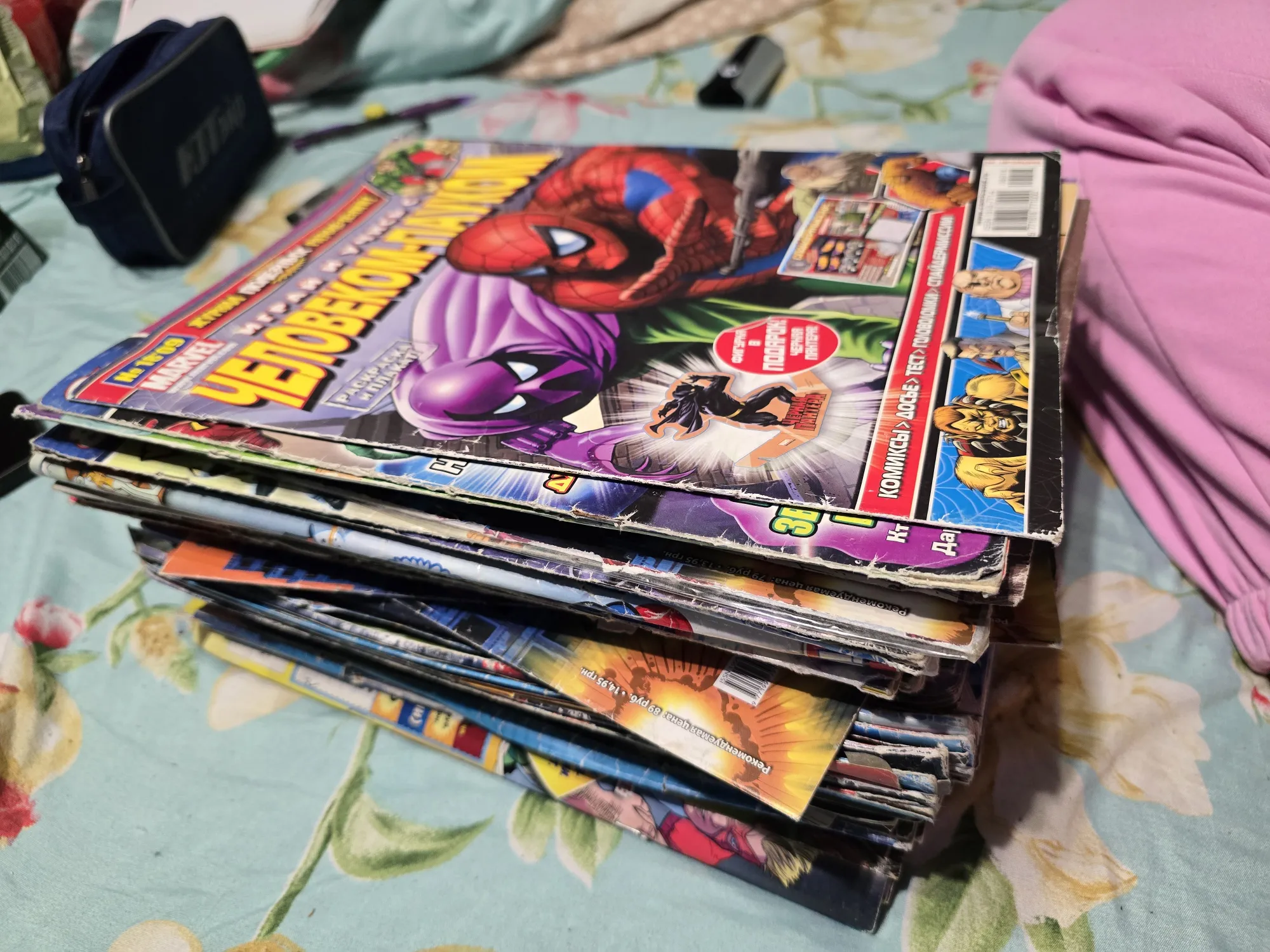 а у меня было всего журнала 3-4, все кроме одного мне подарили. покупать было дорого. в школьные годы покупать начала себе журнал "насекомые и их знакомые" с насекомышами в стекляшках, но потом и они пидоры цену подняли и я перестала брать. но коллекцию собрала нехилую) когда-то на капи уже показывала, но ещё раз покажу)