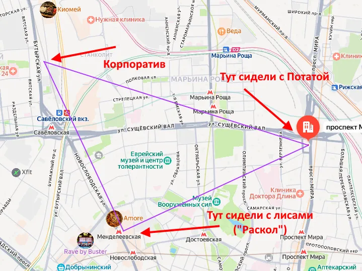 Сидели в ресторанчике, вполне так в неплохом. Относительно недалеко (по меркам Москвы) от Раскола, кстати. У меня тут треугольник неплохой получился.