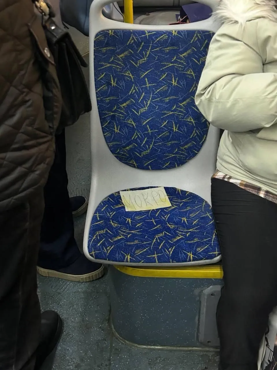 А это загадка какая-то. Отпечаток детских ног на стекле троллейбуса. Обе левые О_О