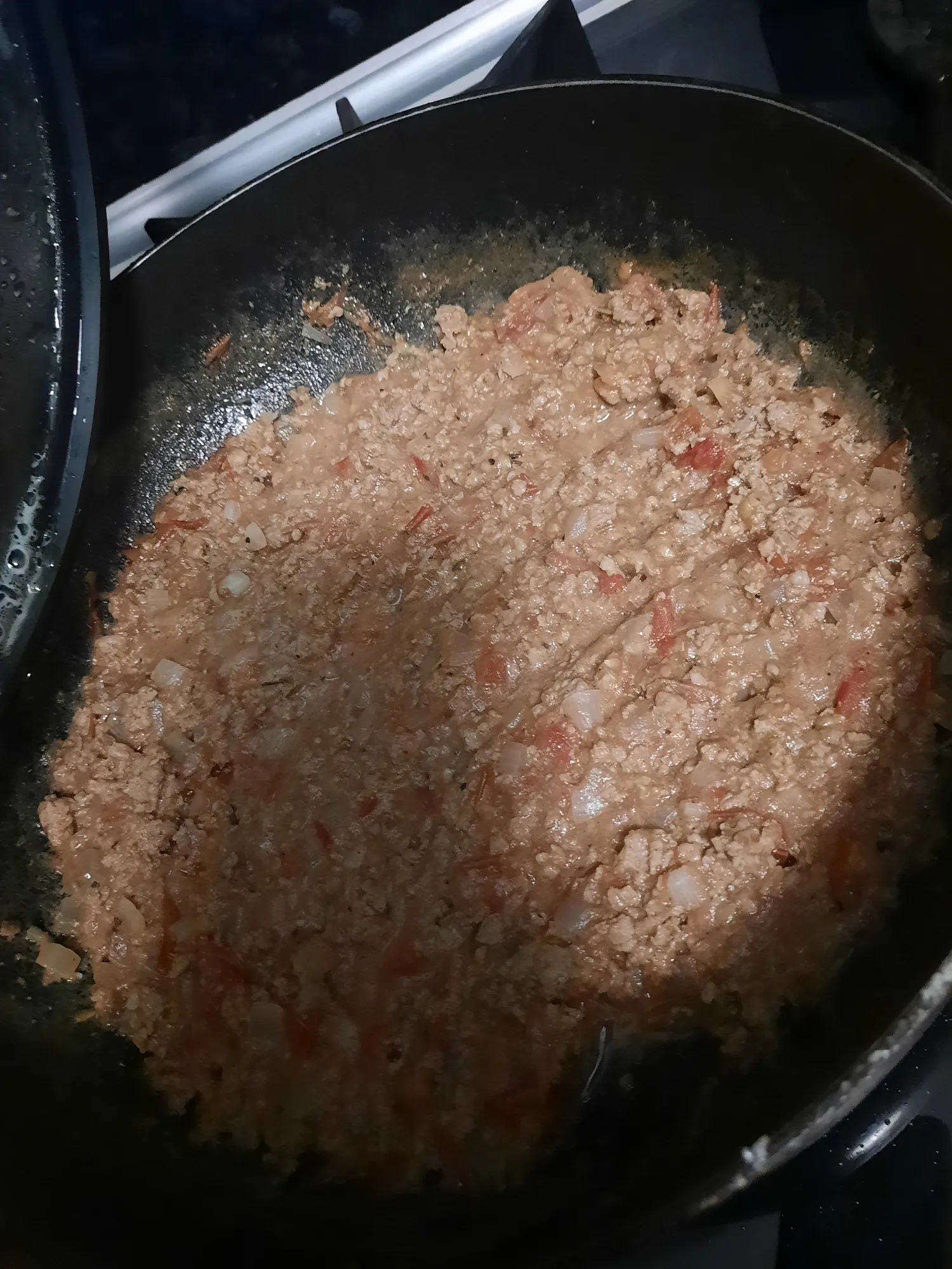Ничего красивого. Пюреха и фарш с помидорками и луком потушила. Но покажу:D