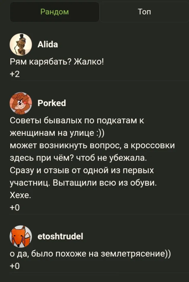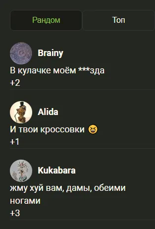 ебаное дерьмо, нашла в рандоме 2 коммента, про хуй в жопе и про то что это опора здорового человека