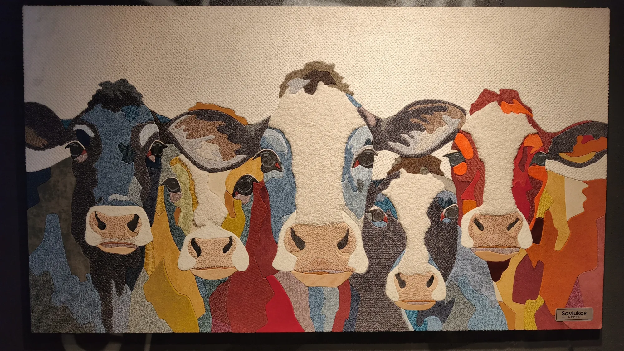 В одном из мебельных салонов увидел необычные картины, сделанные из кусочков ткани. Вживую видел такое впервые. Ткани мебельные, для обивки, поэтому картины приятно не только смотреть но и ощупывать. Делюсь и с вами красотой.