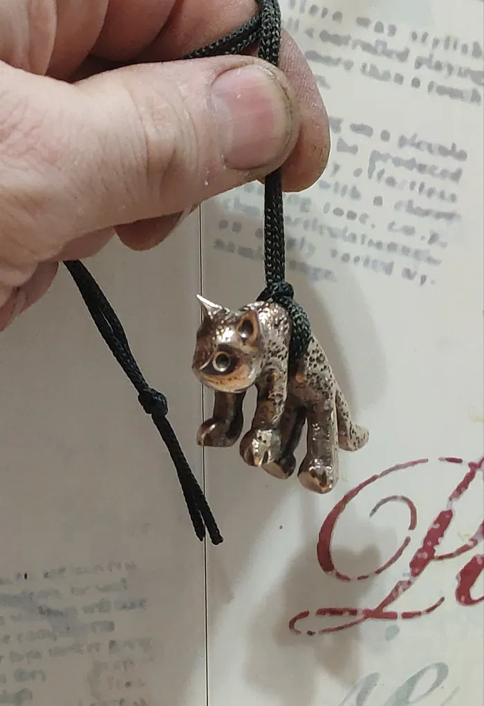 Да там смотреть по сути не на что. Плавлю бронзовую плюшку, привариваю лапки и всё остальное, обтачиваю т вуаля, получается котейка))